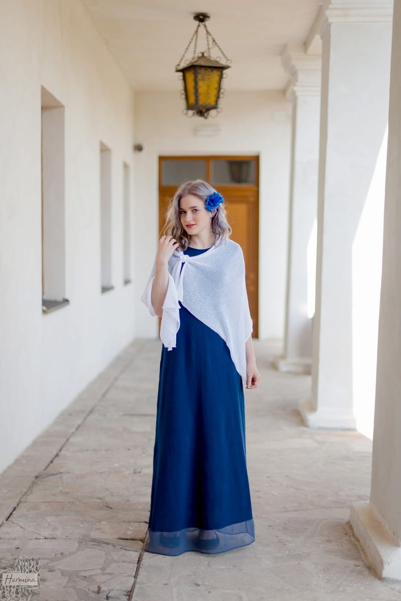 Jego zastosowanie może być różne. Związany szal tworzy minimalistyczne ponczo - narzutkę, może być tylko zarzucone na ramiona jako ,, zwykły " szal.