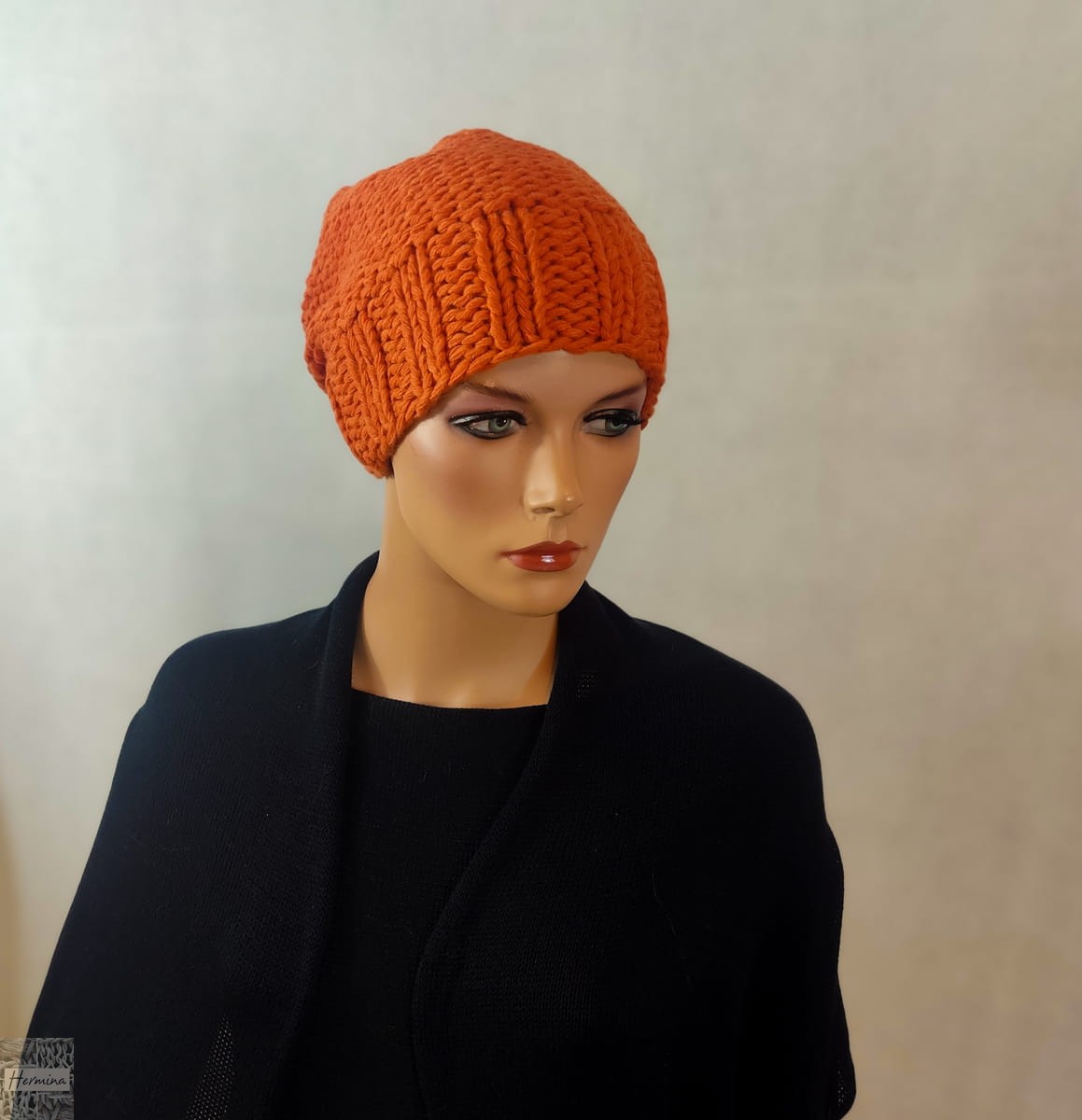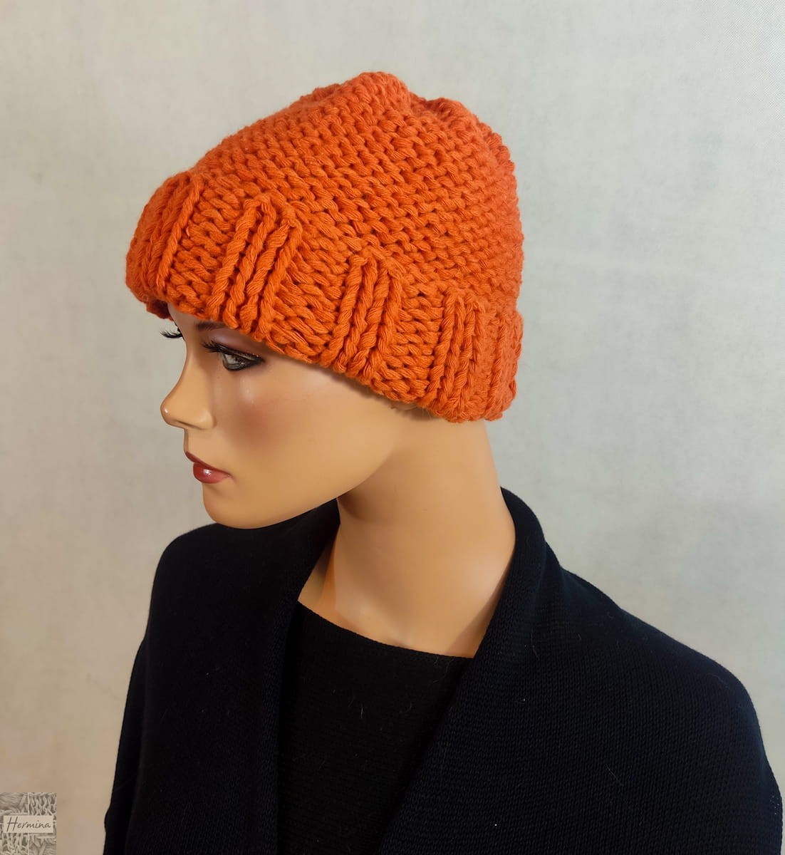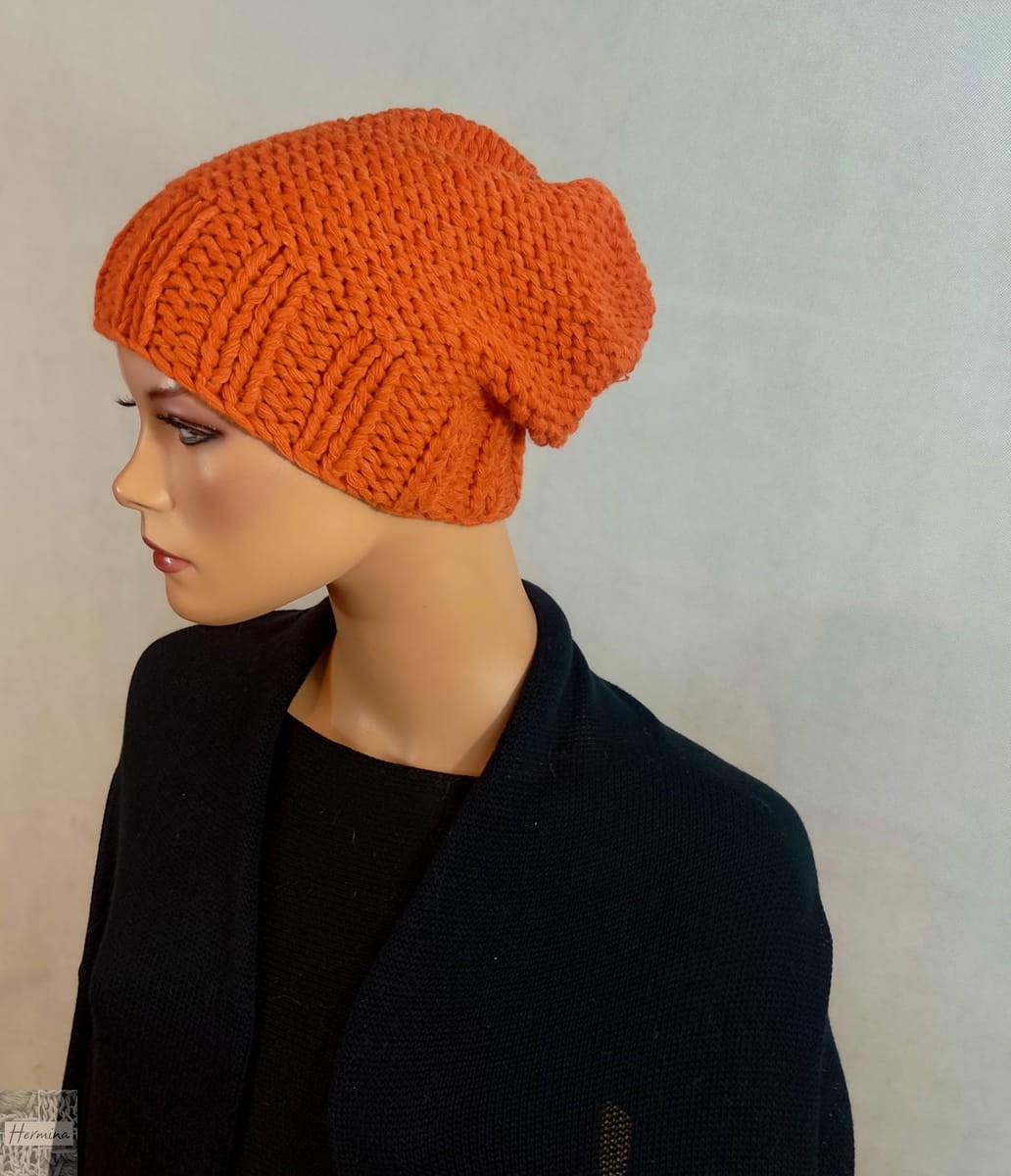 Czapka wykonana ręcznie na drutach z wełny jagnięcej. Miękka, ciepła Pasuje na głowę o obwodzie 54-56 cm