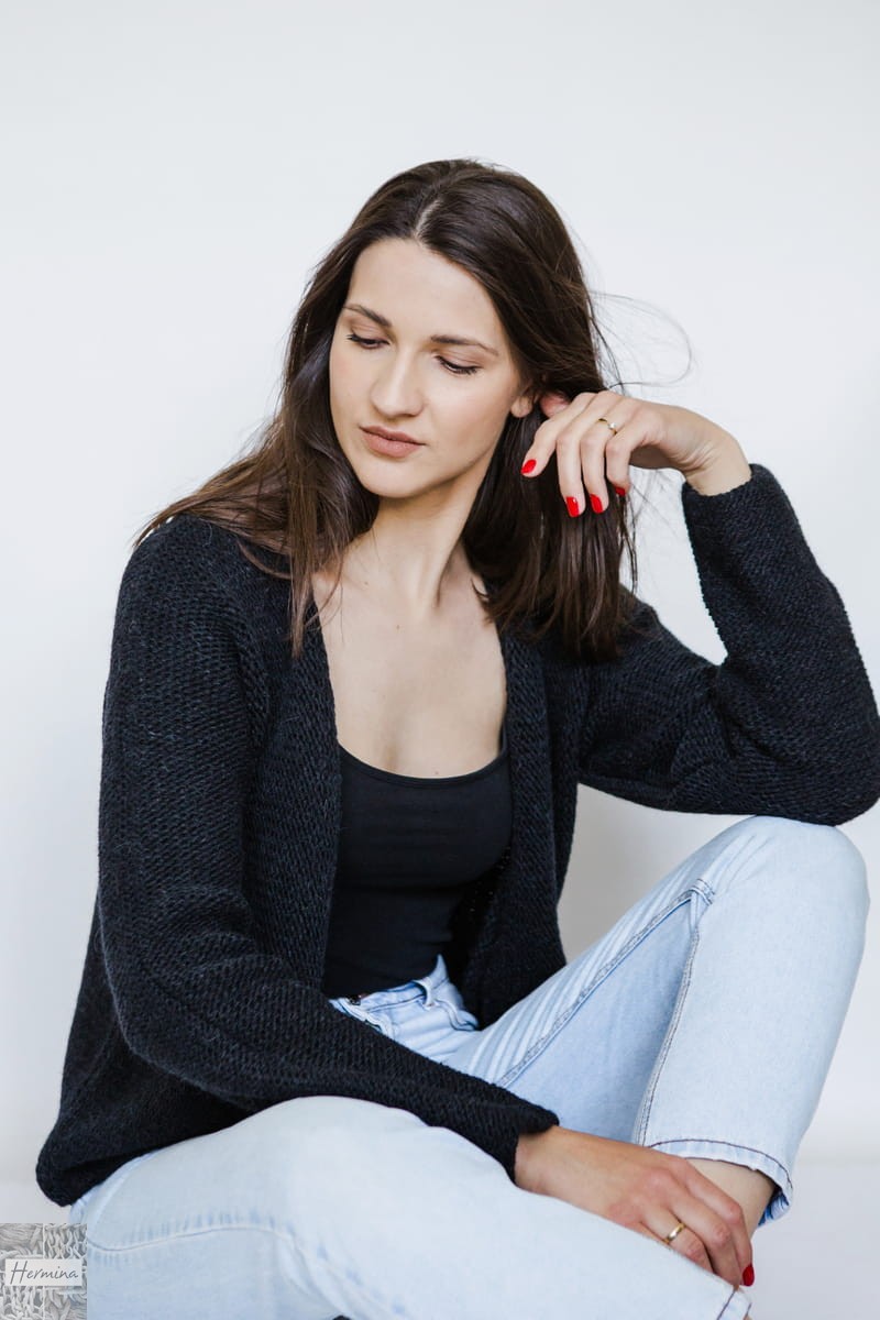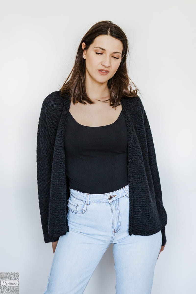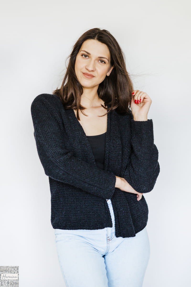 CZARNY CIEPŁY ROZPINANY SWETER Z WEŁNY