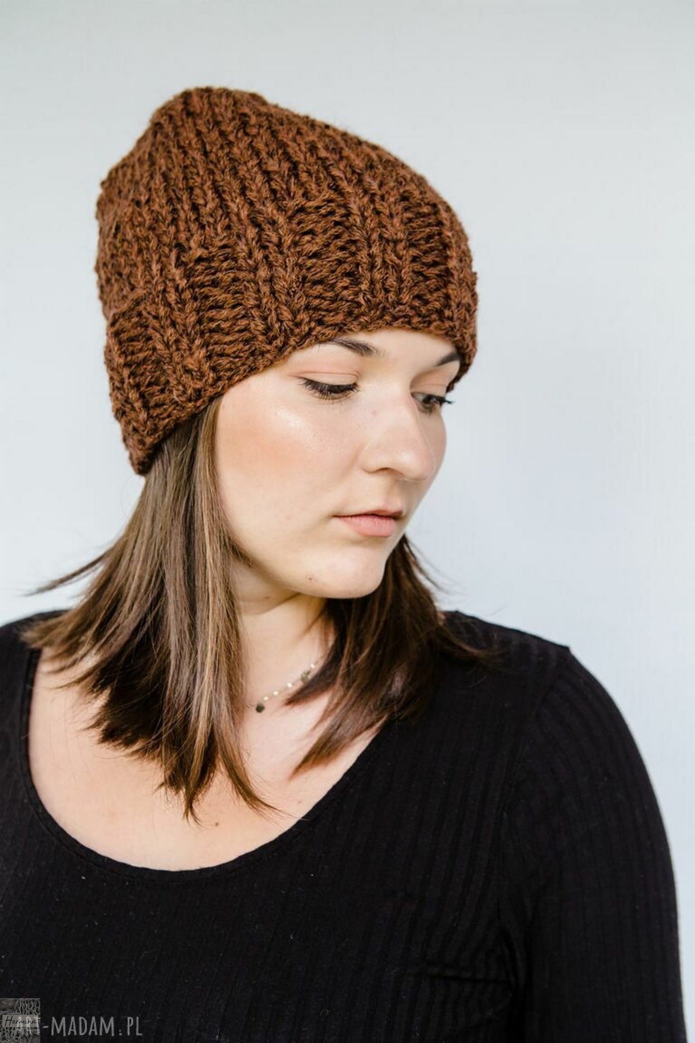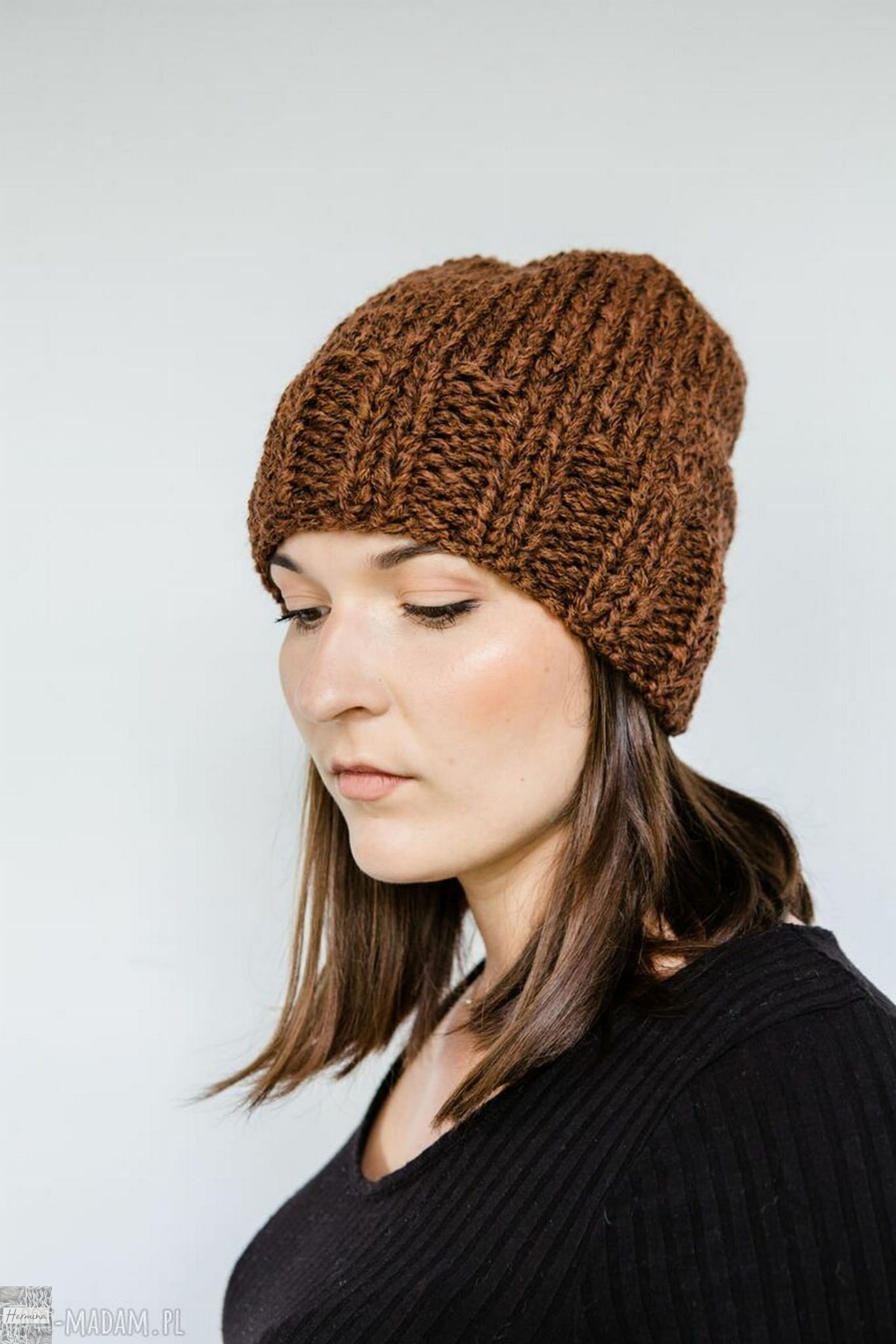 Czapka handmade ciepły brąz