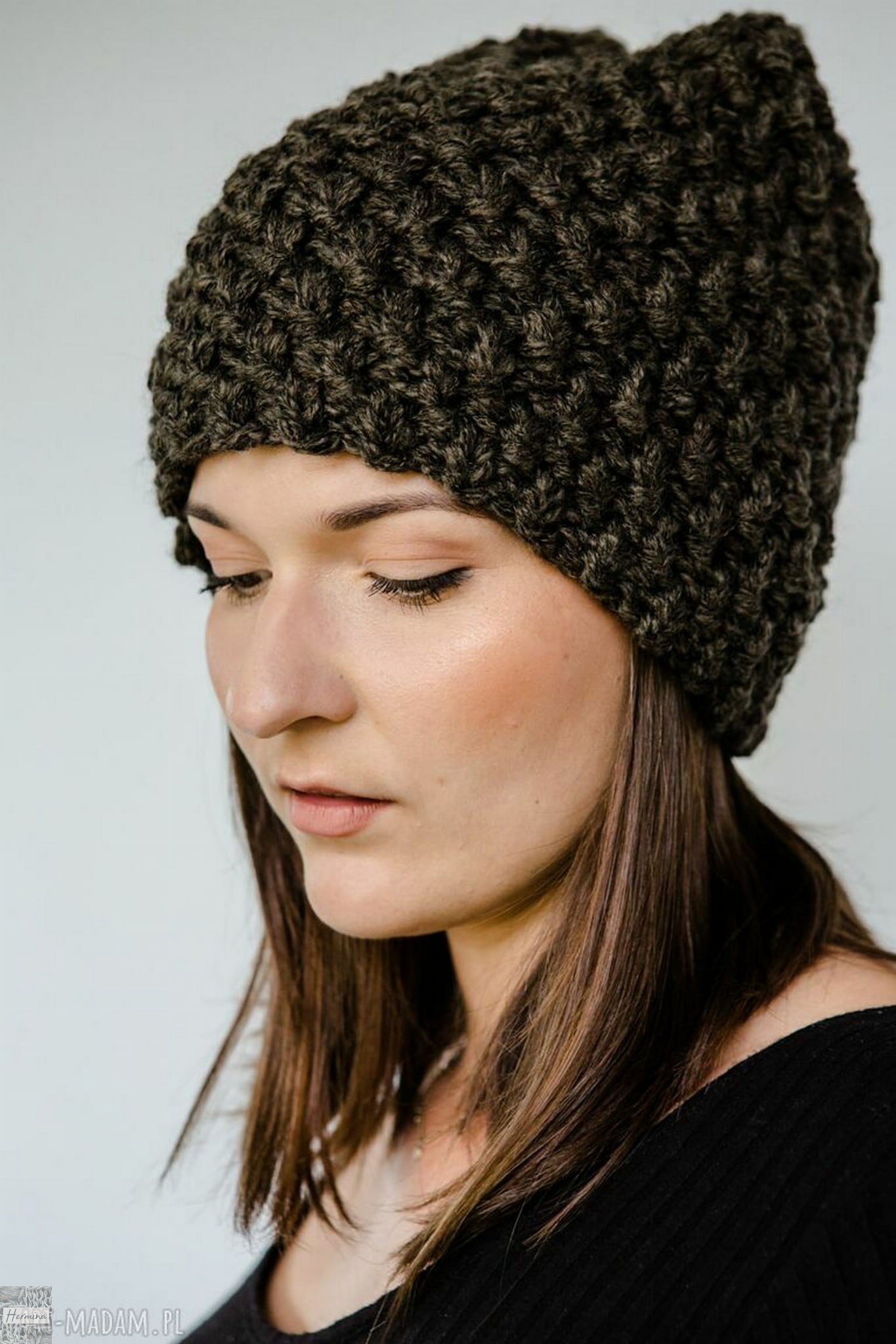 Czapka handmade kolor khaki