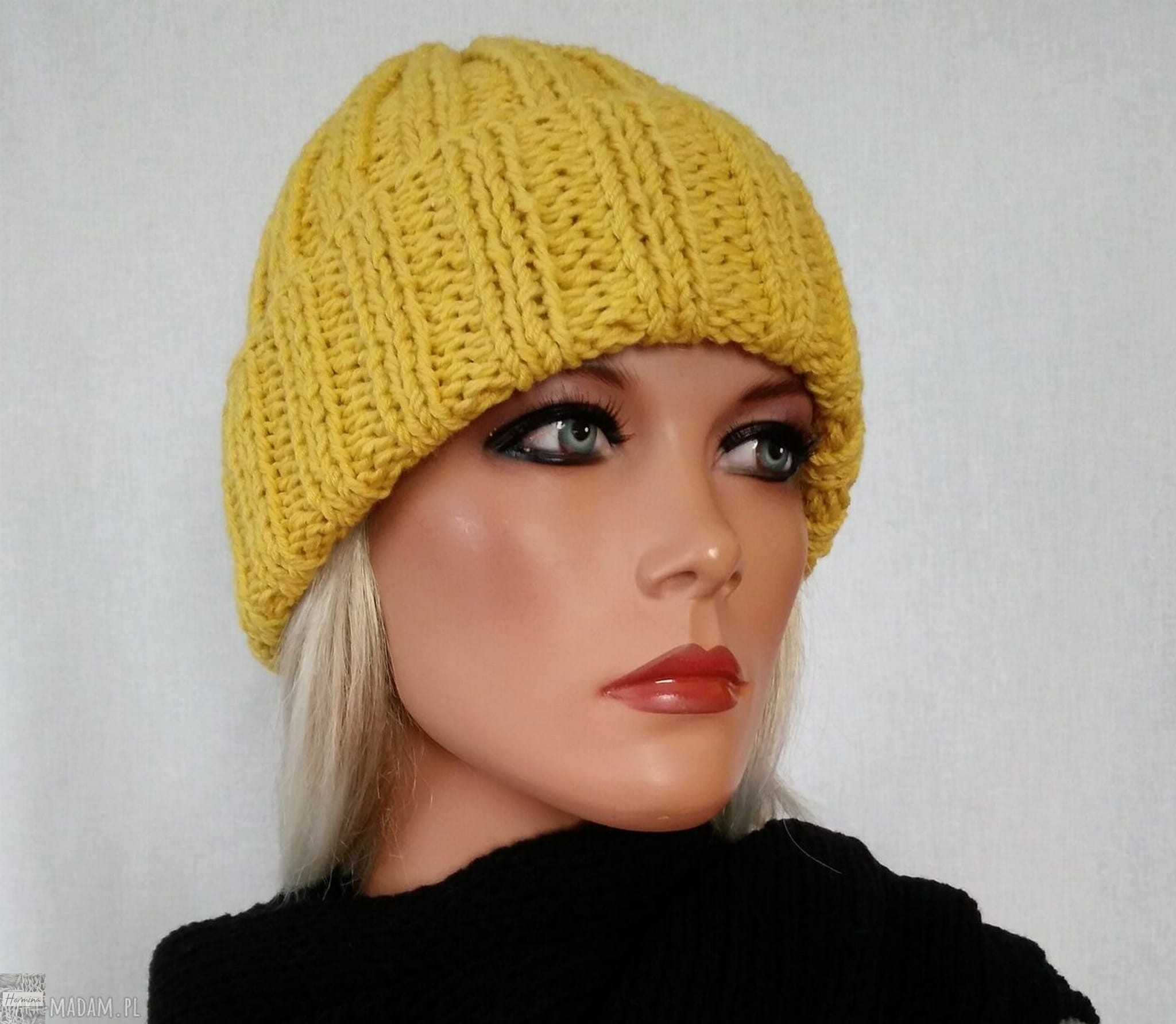 Czapka handmade żółta