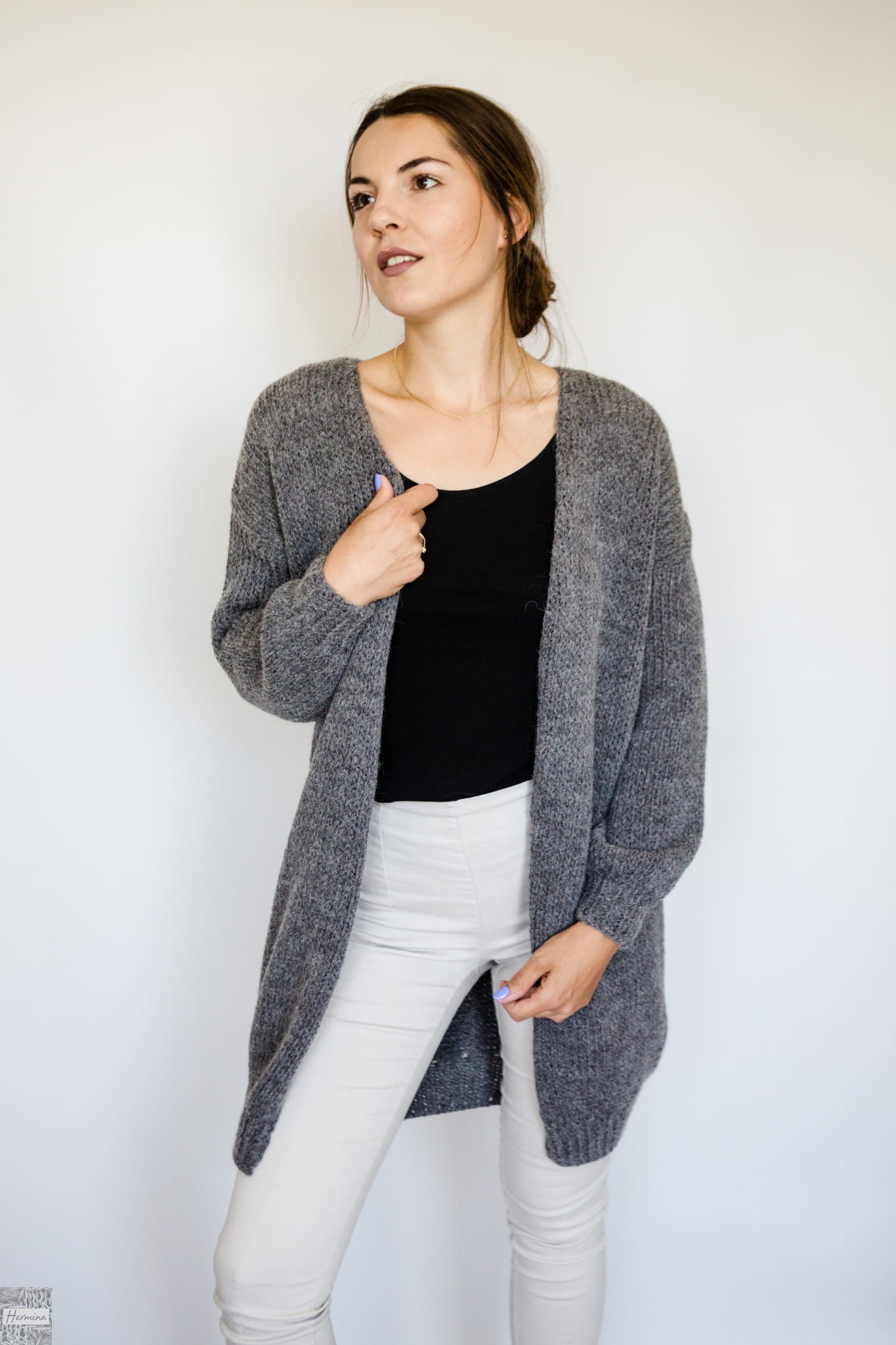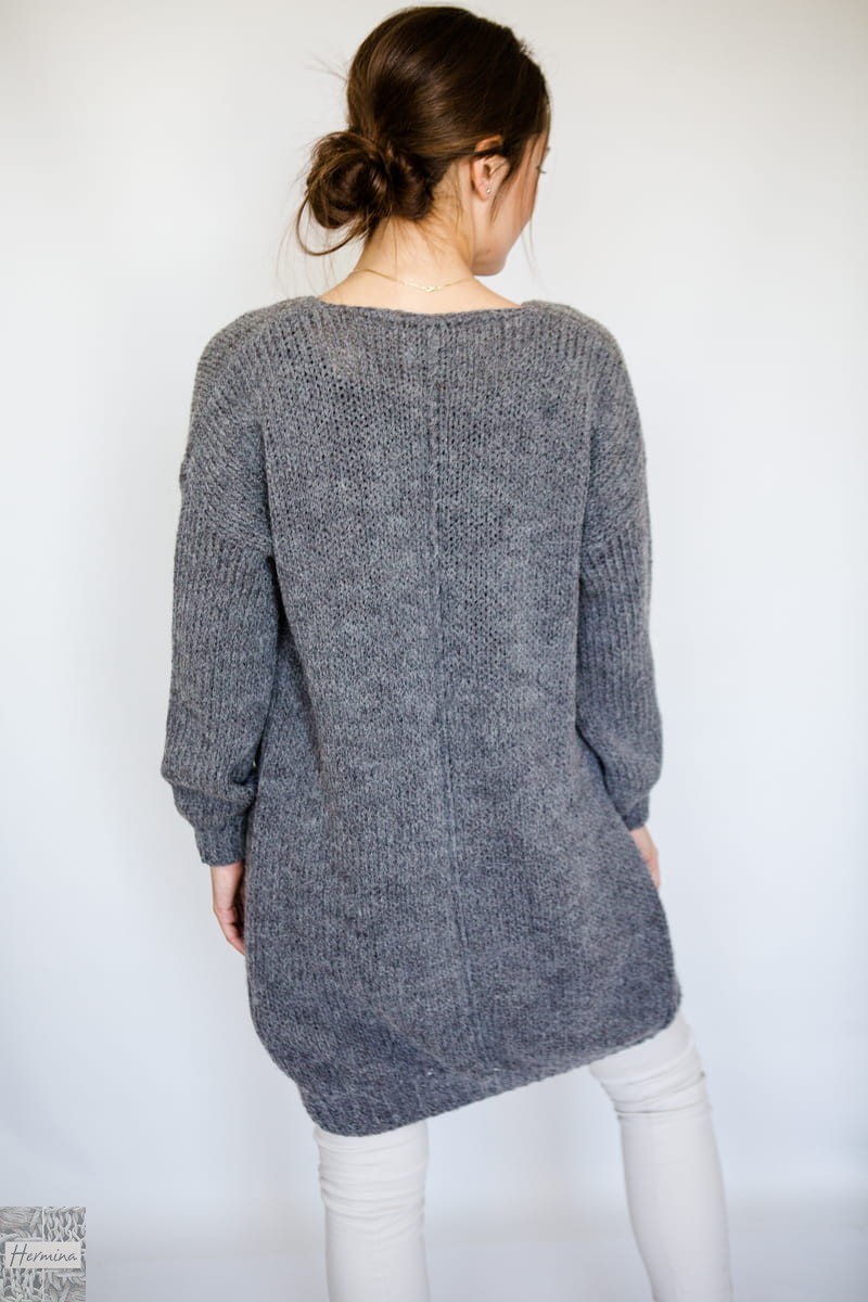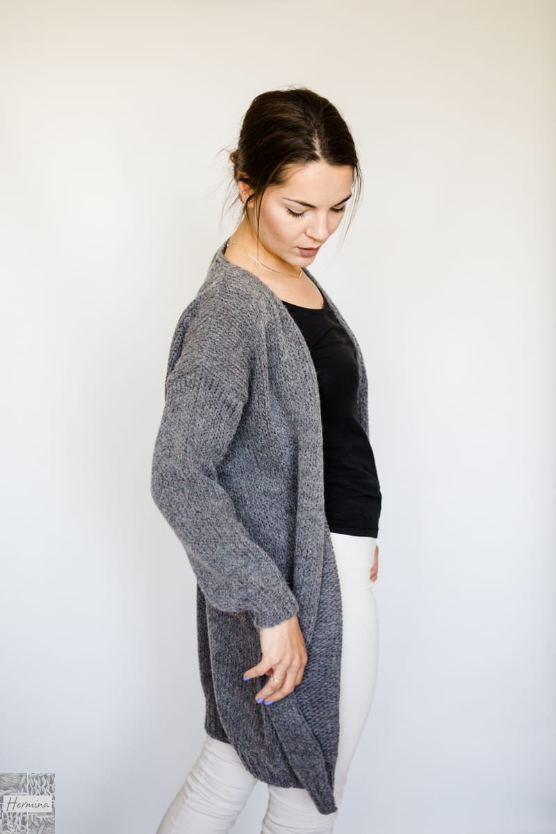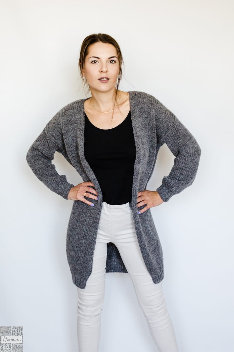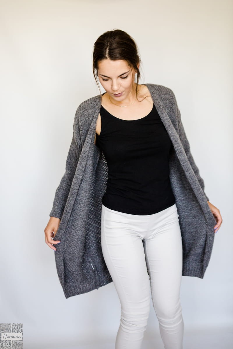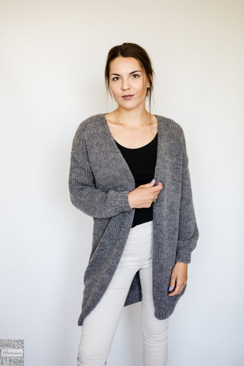 Ciepły, długi, oversizowy kardigan, wykonany w naszej pracowni z wysokiej jakości wełny z merynosów z alpaką i akrylem. Idealny na chłodniejsze dni.