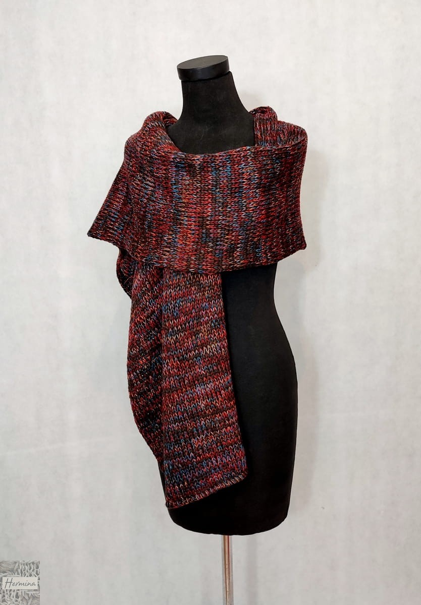 Gruby szal jest wykonany w naszej pracowni z wysokiej jakości wełny z merynosów z dodatkiem akrylu. Doskonale otula w chłodniejsze dni.