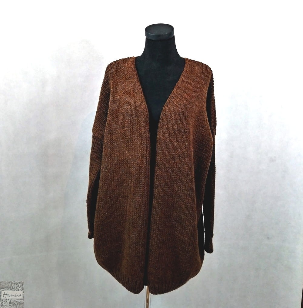 KARDIGAN OVERSIZE KASZTANOWY BRĄZ