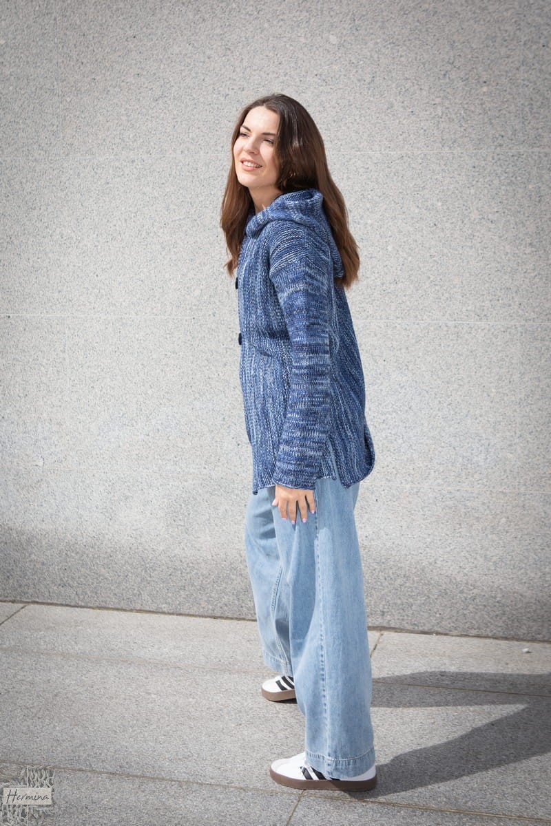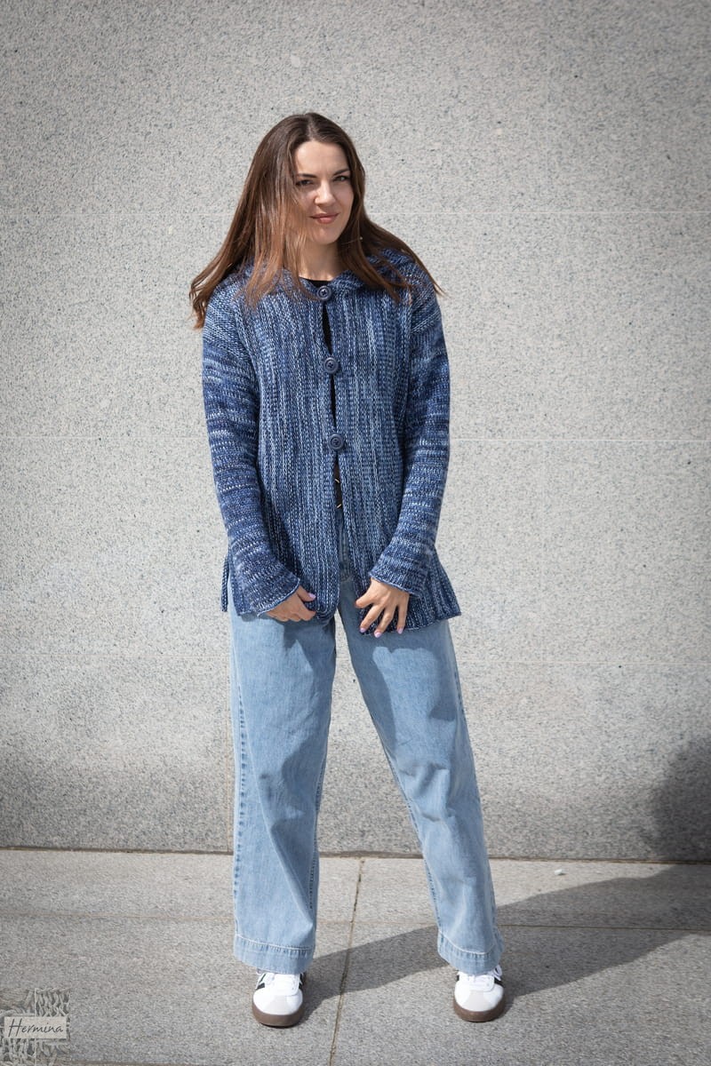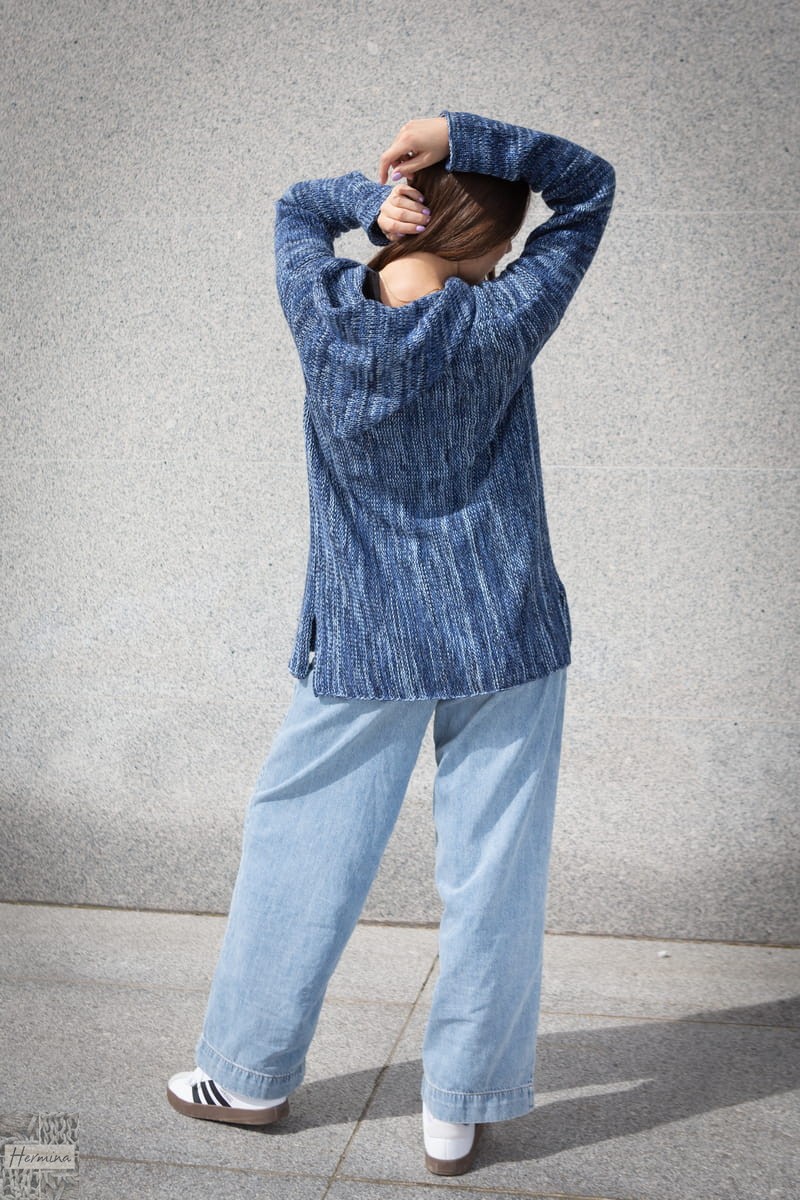 Ciepły, luźny sweter wykonany z wełny i akrylu. Jego ponadczasowy fason pasuje do wielu stylizacji. Doskonały na wiosenne i jesienne chłody. Doskonale sprawdzi się na spacer, lub na mniej oficjalne okazje. Jest przeznaczony dla Pań ceniących sobie komfort i wygodę. Rozmiar ONESIZE. Melanżowy sweter w odcieniach niebieskiego i granatu.