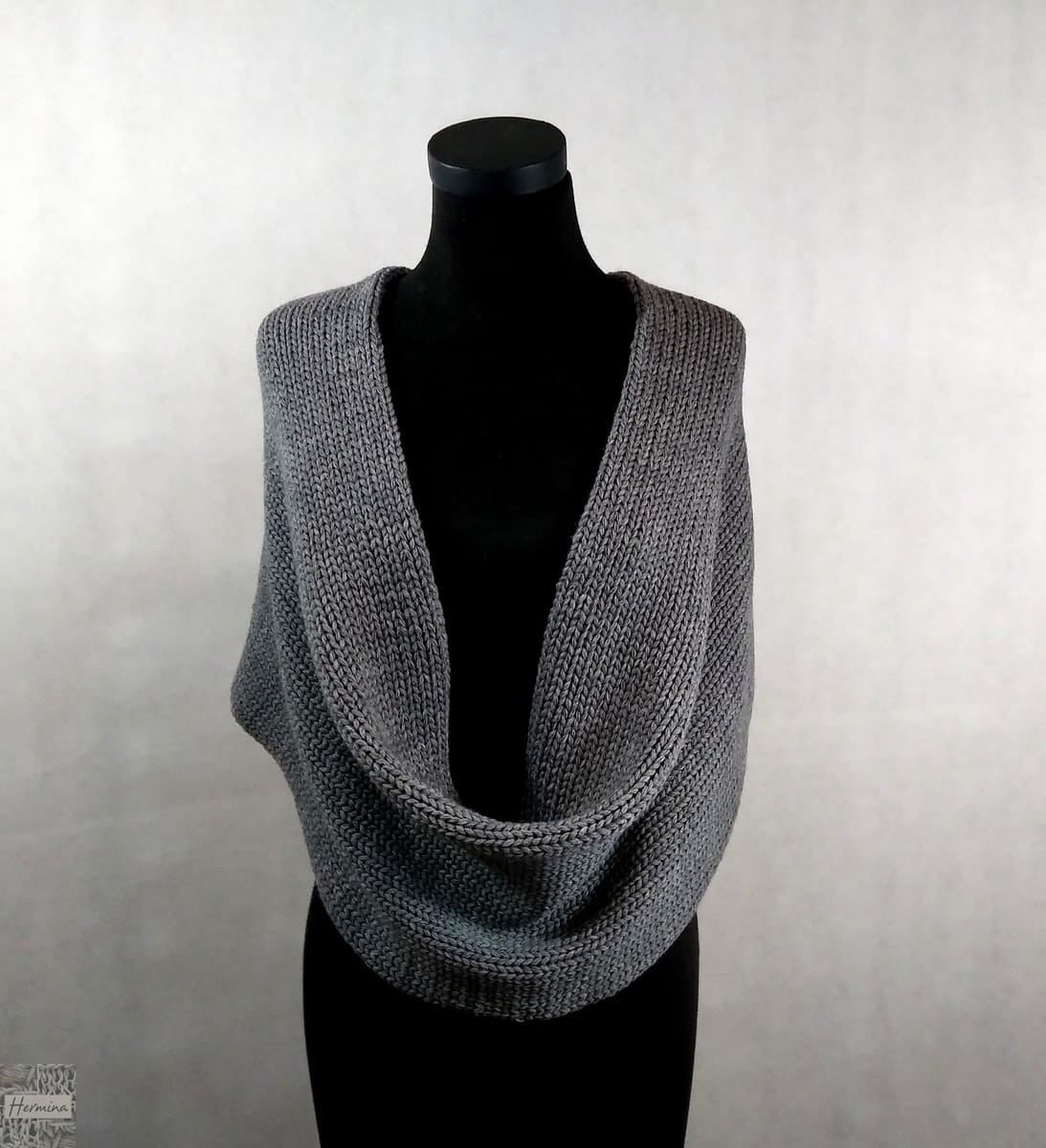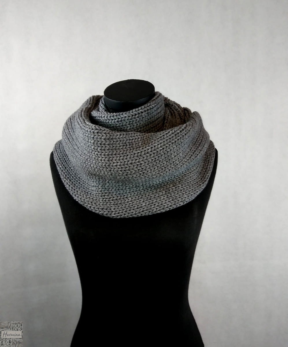 Prosty komin wykonany z wysokiej jakości włóczki, w kolorze ciemnoszarym.