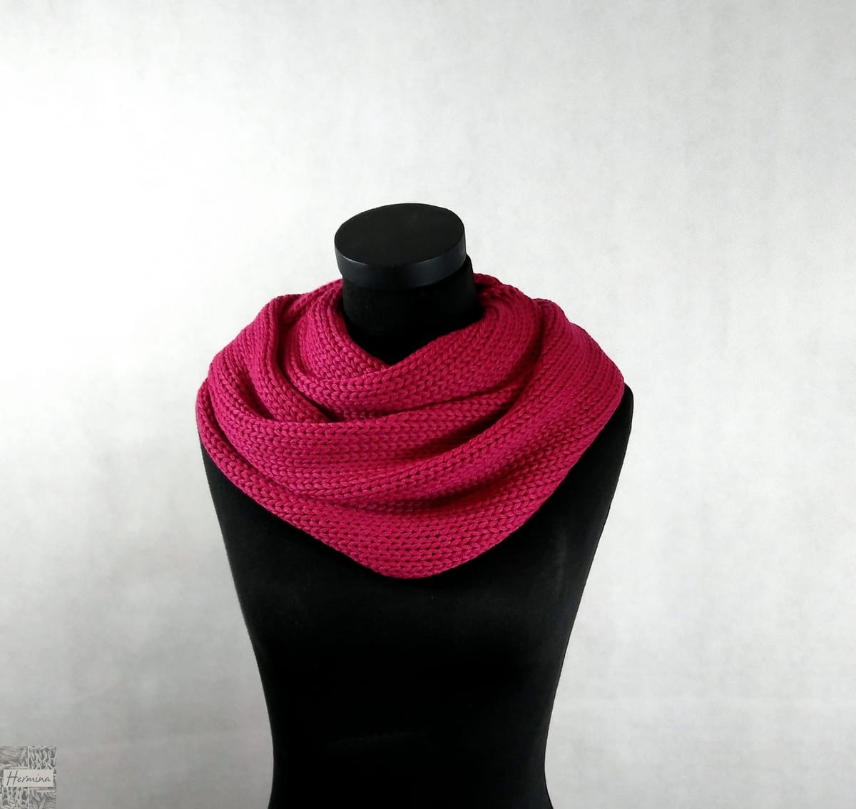 Prosty komin wykonany z wysokiej jakości włóczki, w kolorze różowym.