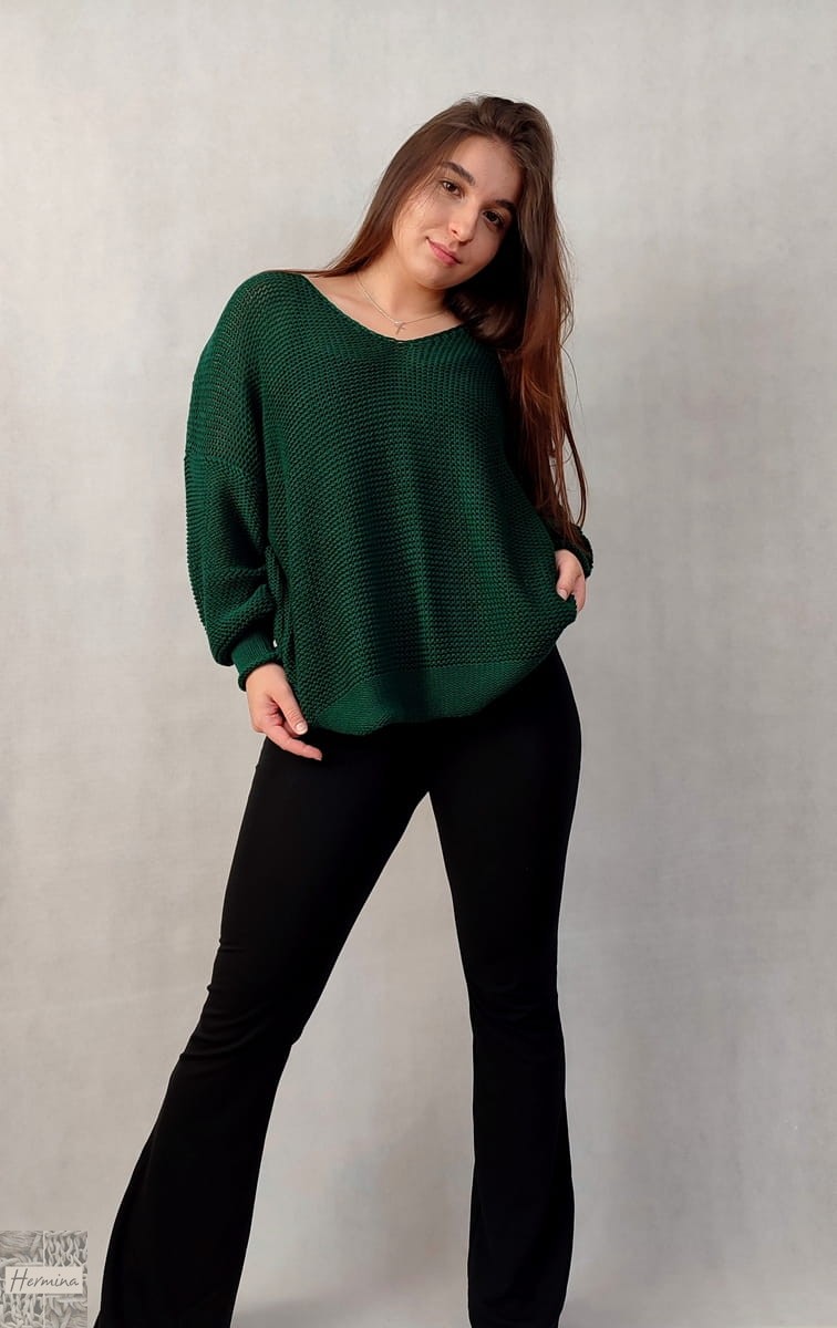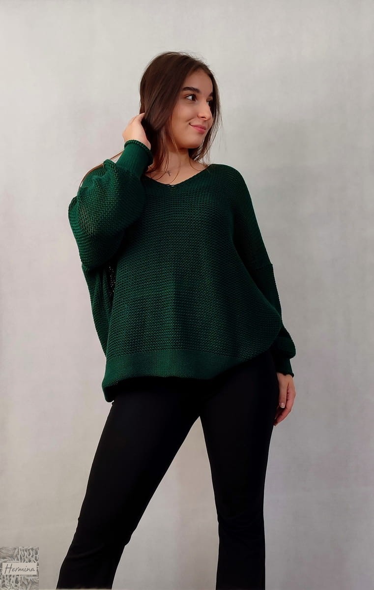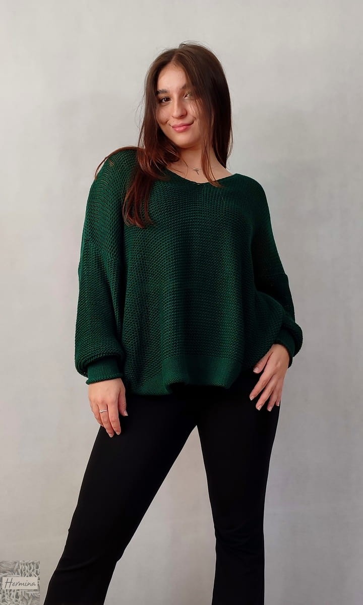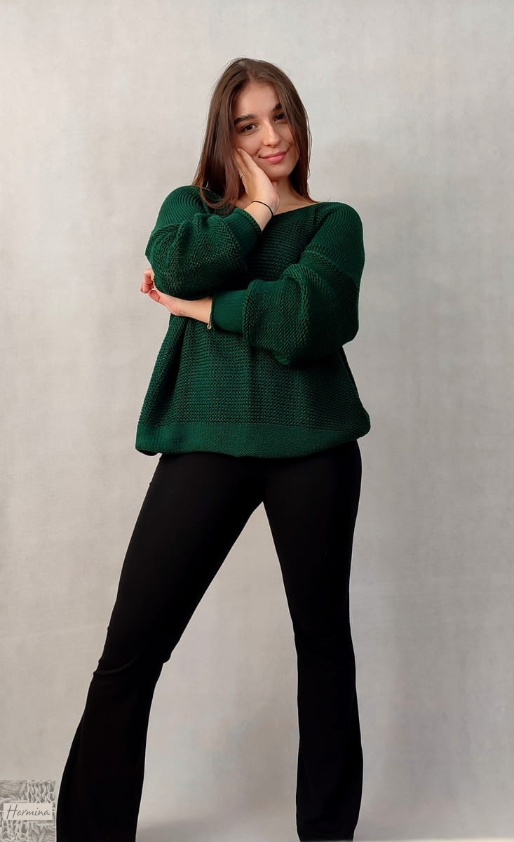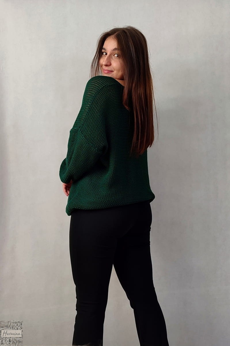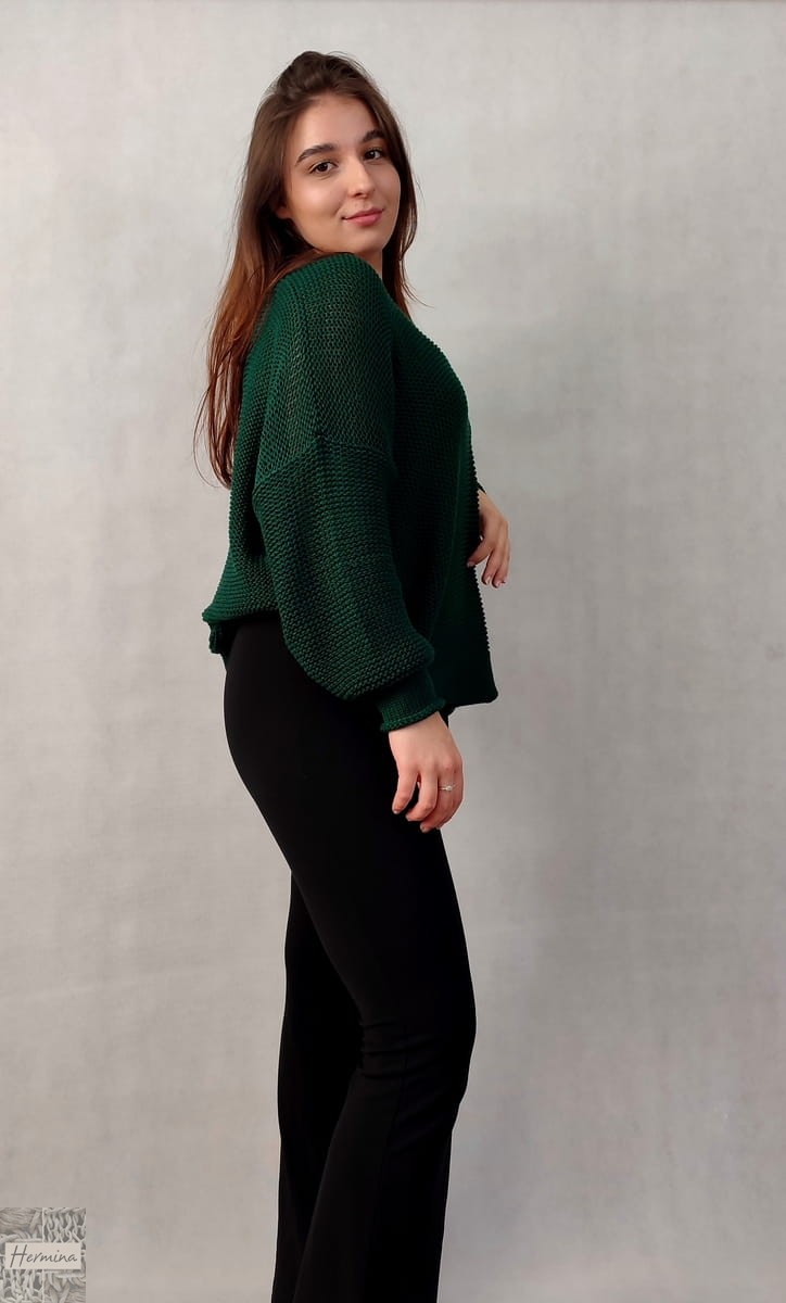 Luźny sweterek w kolorze butelkowej zieleni