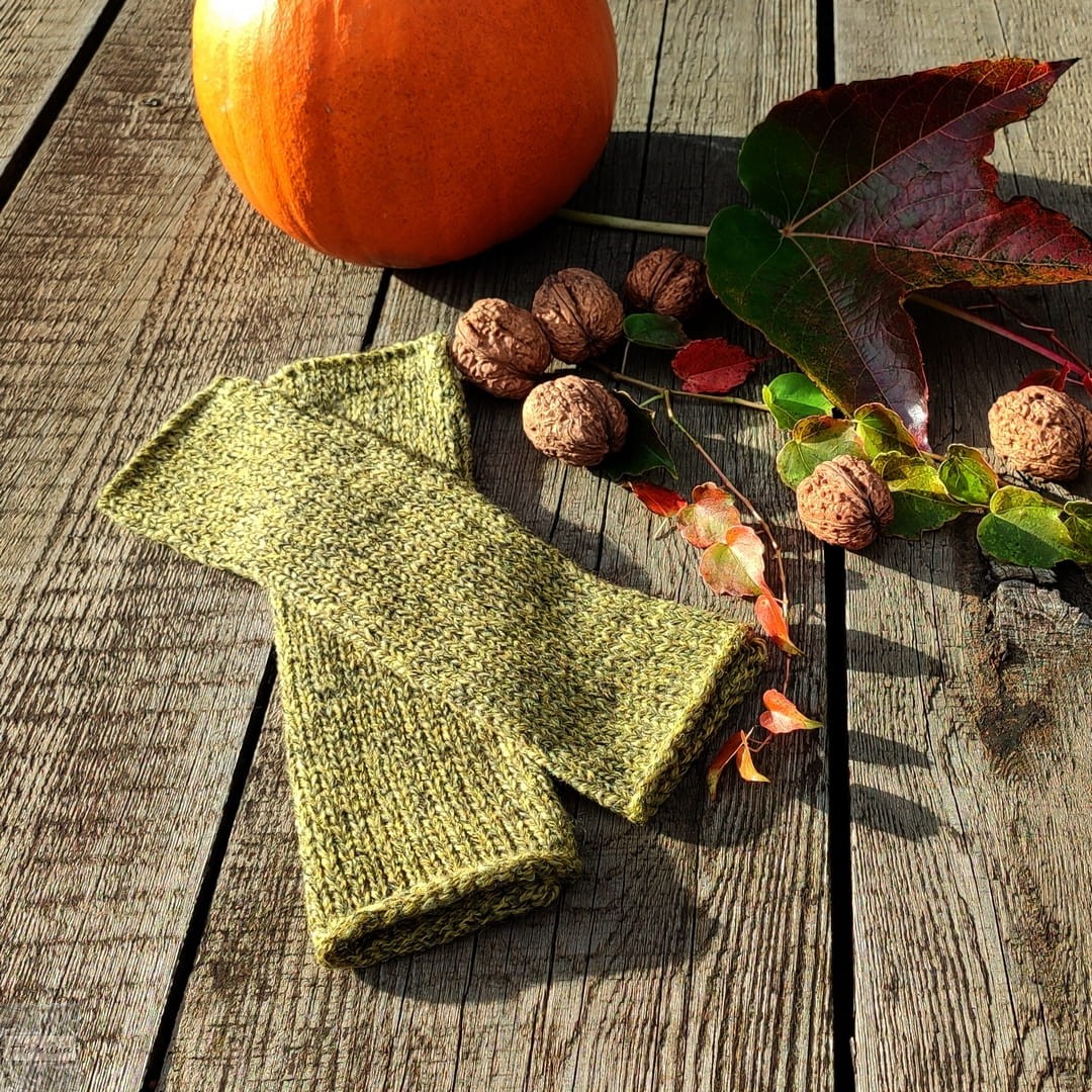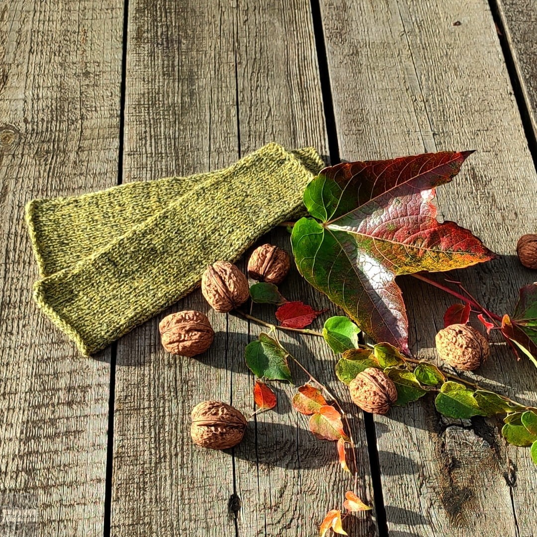 Mitenki w kolorze żółtym z domieszką koloru grafitowego.