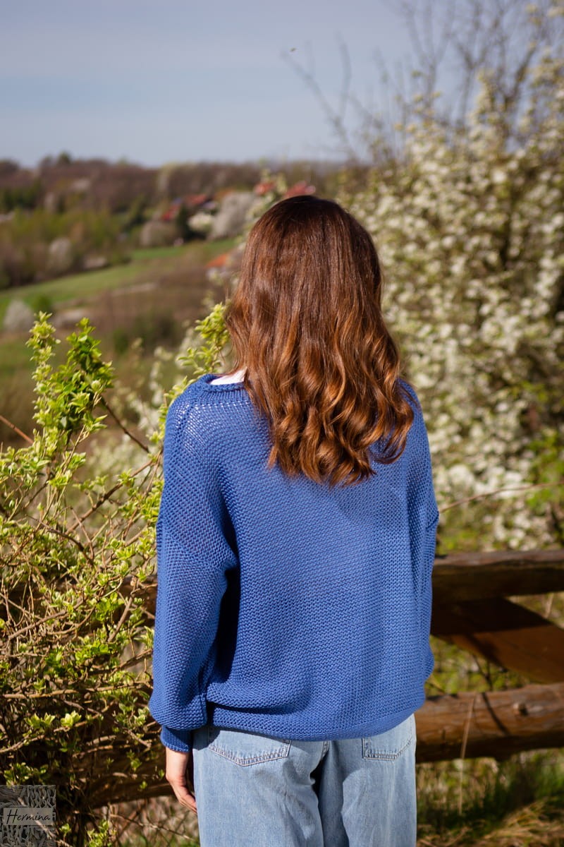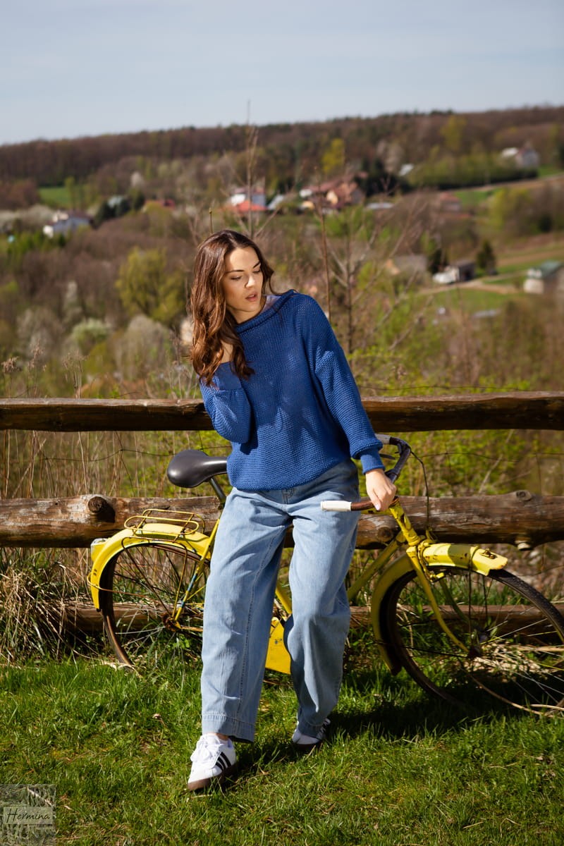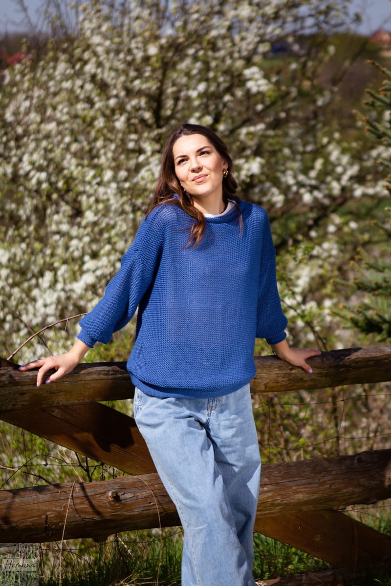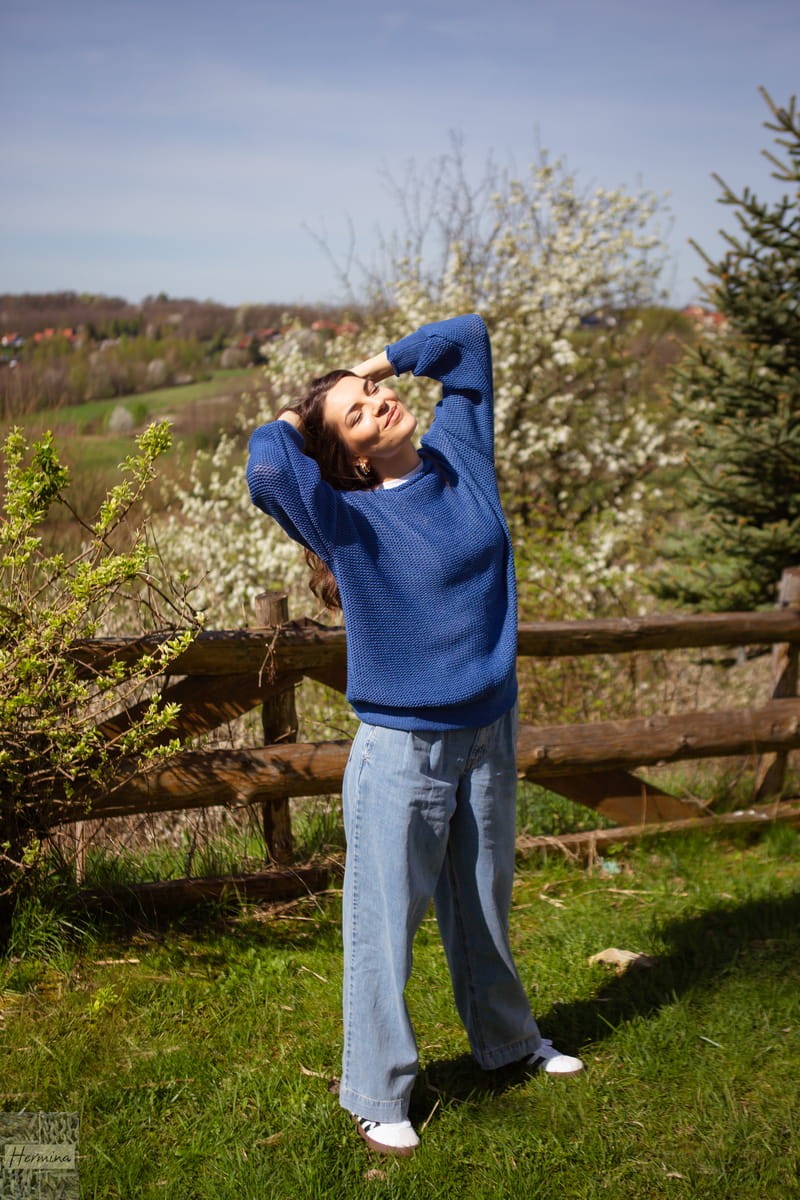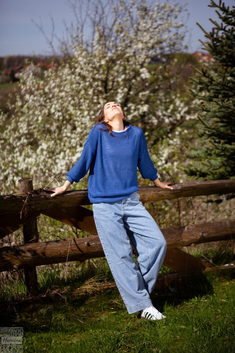 Niebieski sweterek w stylu OVERSIZE to doskonała alternatywa dla Pań, które uwielbiają luźne bluzy i wygodne wdzianka.