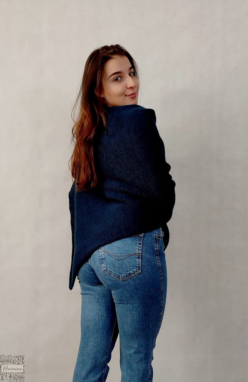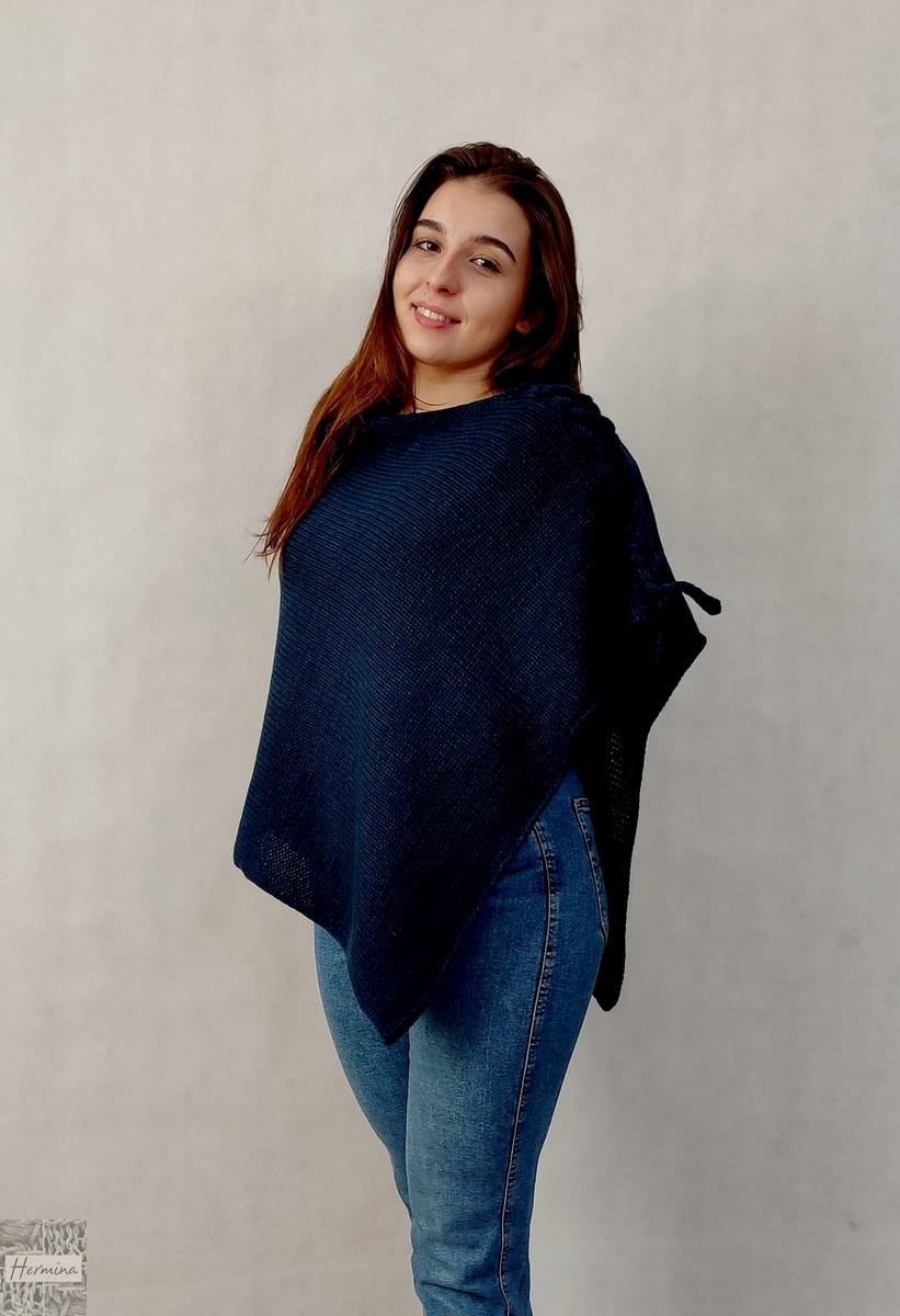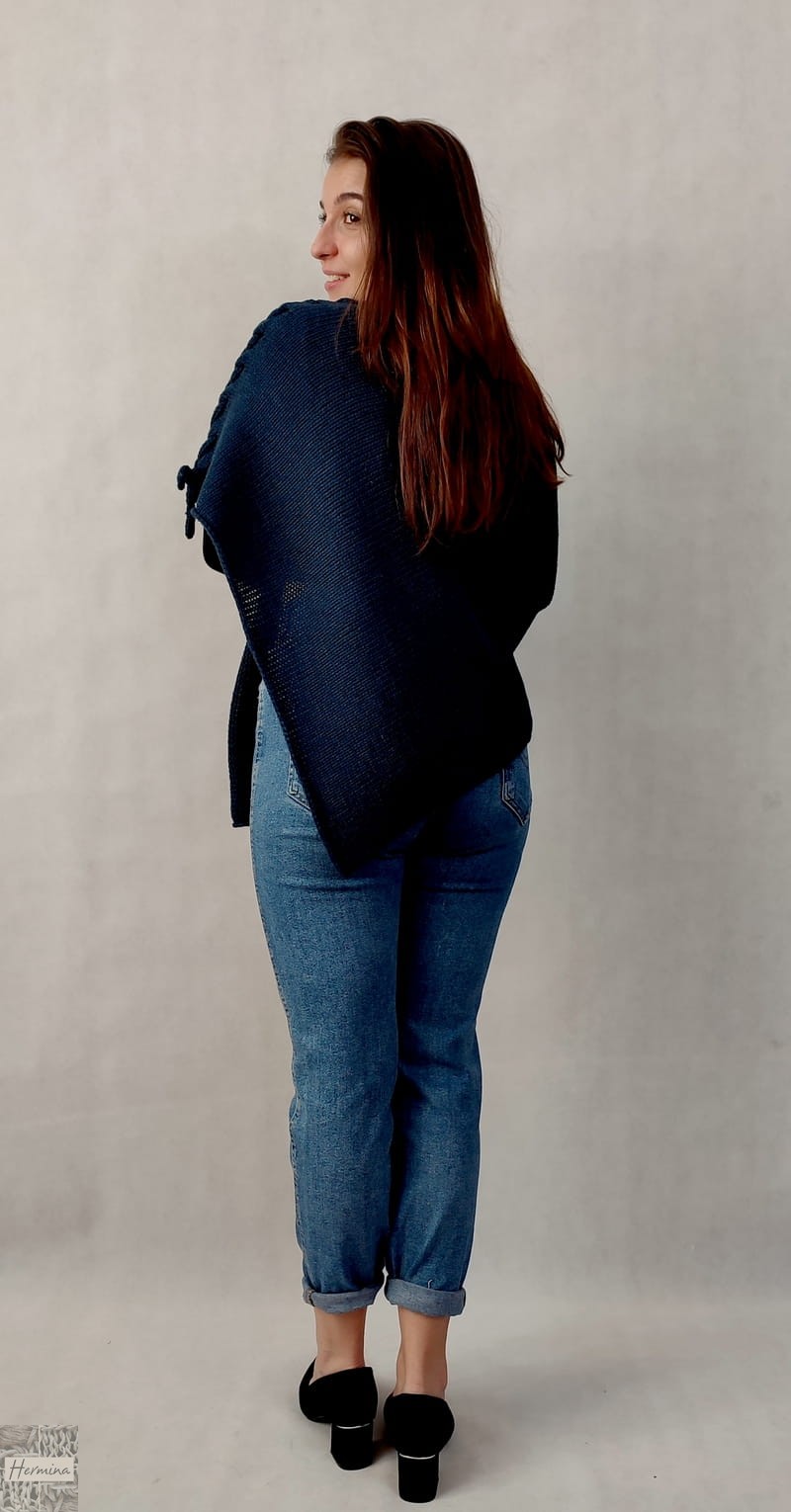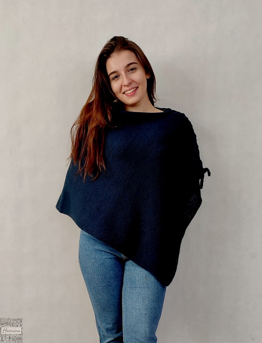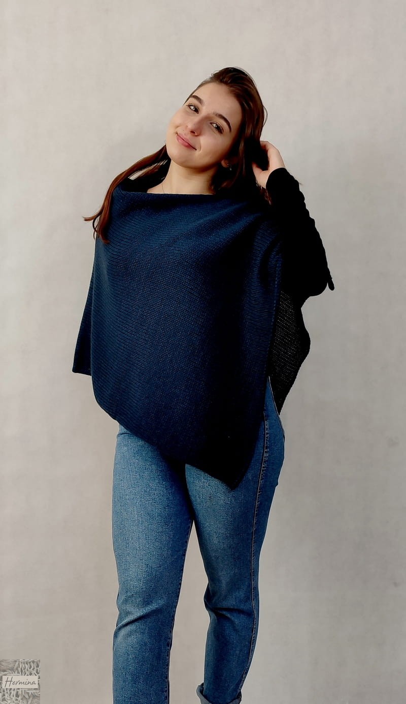 Ponczo z warkoczem wykonane z wysokiej jakości włoskiej włóczki w kolorze granatowym.