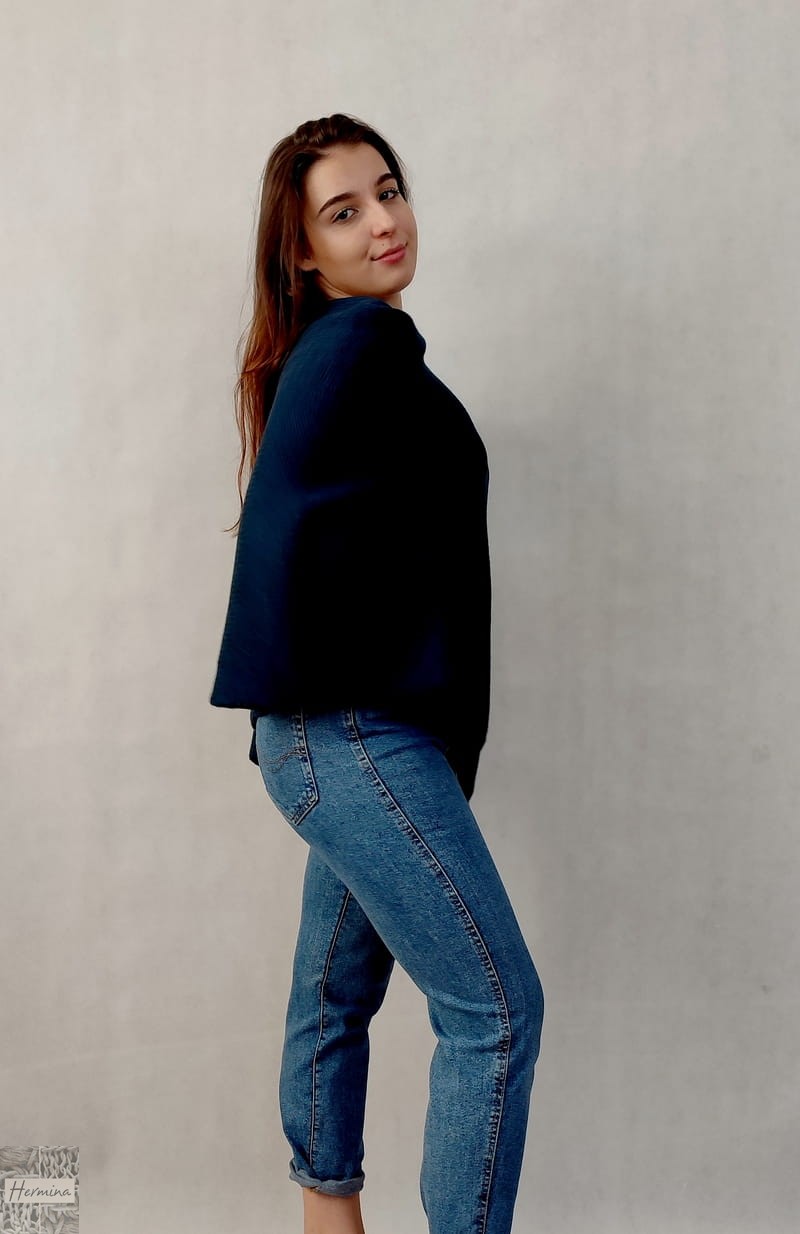 Ponczo można nosić w różnych zestawach, zarówno na bluzkę, sweter jak i kurtkę.