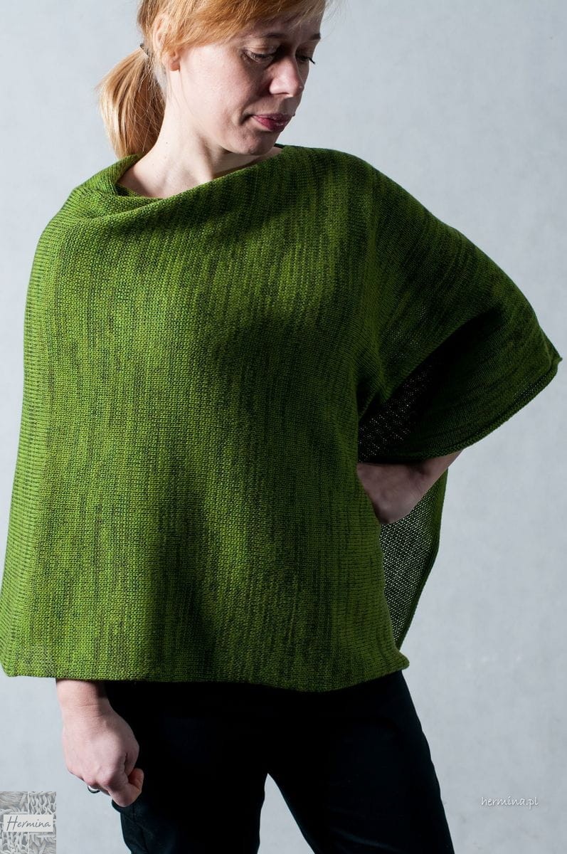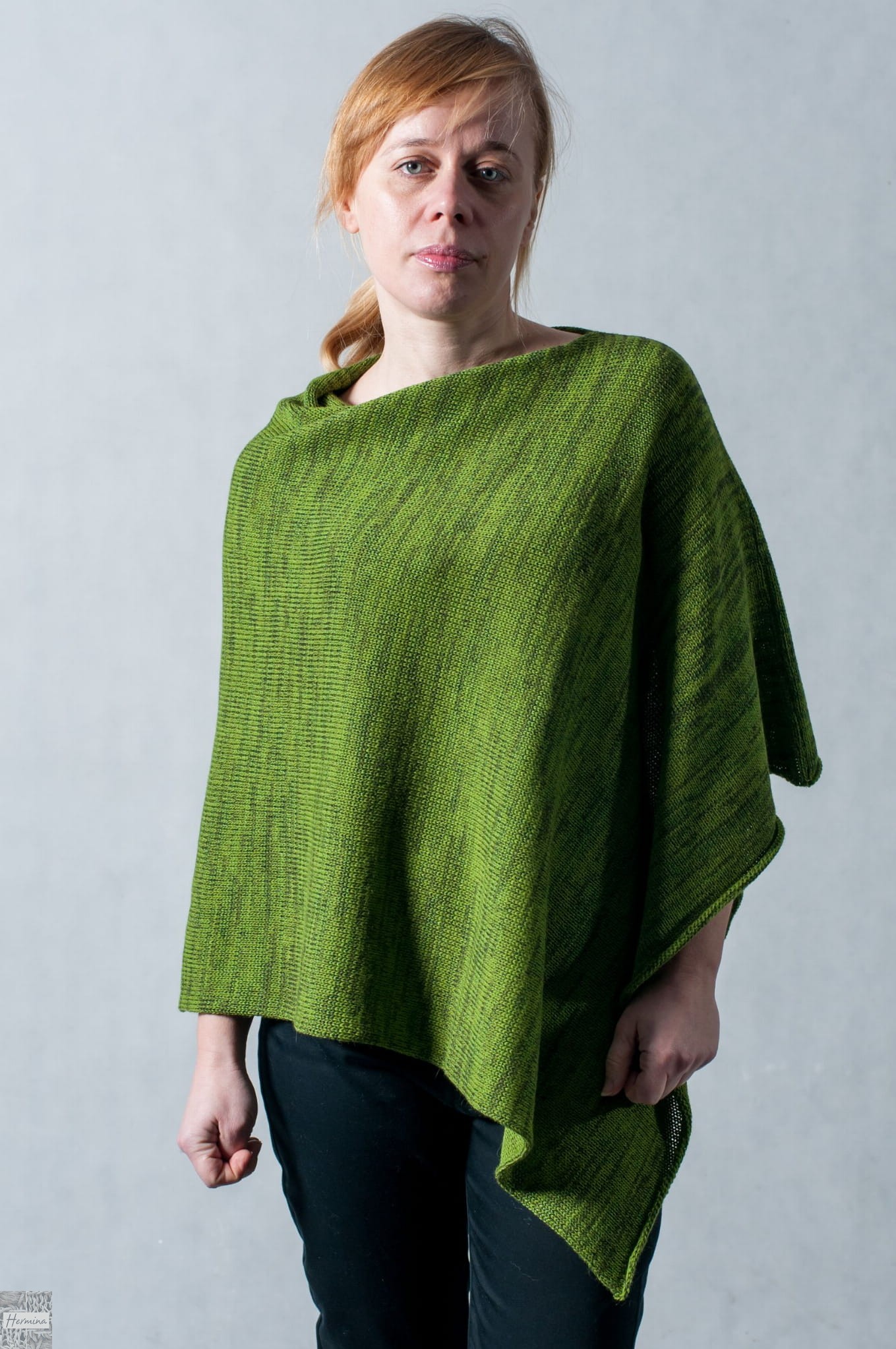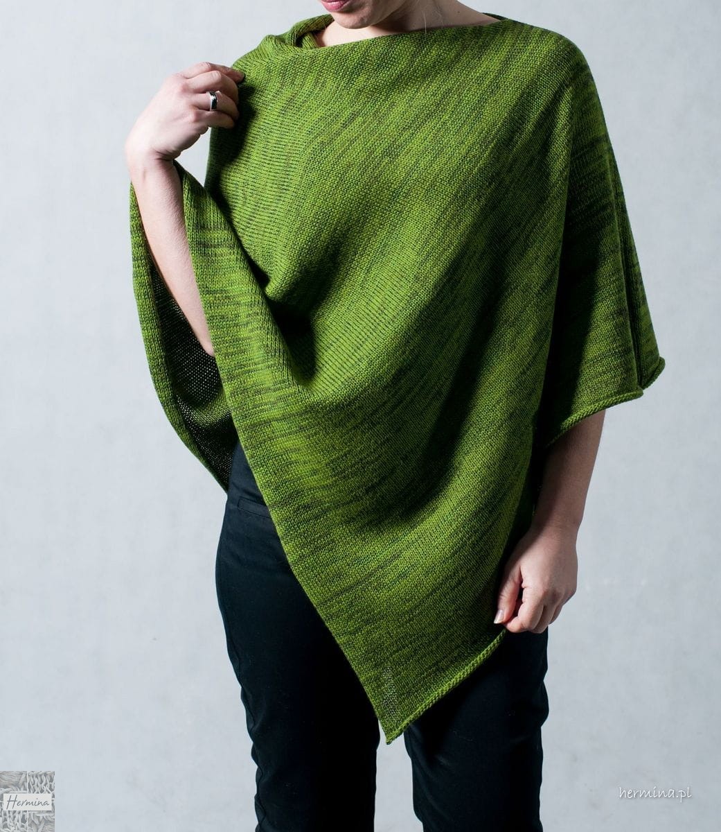 Ponczo w odcieniach oliwkowej zieleni, wykonane z wysokiej jakości przędzy. Dostępne w dwóch wielkościach, mniejsze odpowiada rozmiarom S/M, większe rozmiarowi L/XL. Idealne na chłodniejsze dni, zarówno wiosną, latem i jesienią. Luźny styl praktyczny i wygodny, pasuje do różnych stylizacji. Kolor na zdjęciu może się różnić ze względu na parametry monitora.