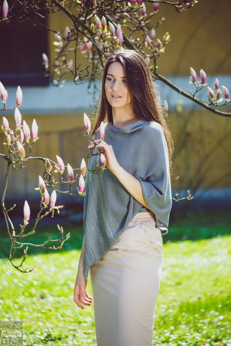 Ponczo wykonane z bawełny z akrylem. Luźny, swobodny krój pasuje do każdej sylwetki. Idealne na wiosnę do wielu stylizacji. Dostępne w szarym kolorze z melanżem . Dzianina jest miękka i sprężysta, dlatego łatwo dopasowuje się do sylwetki. Wykonane na ręcznej maszynie dziewiarskiej typu vintage. Kolor na zdjęciu może się różnić ze względu na różne parametry monitora. Dostępne w rozmiarze S/M, L/ XL