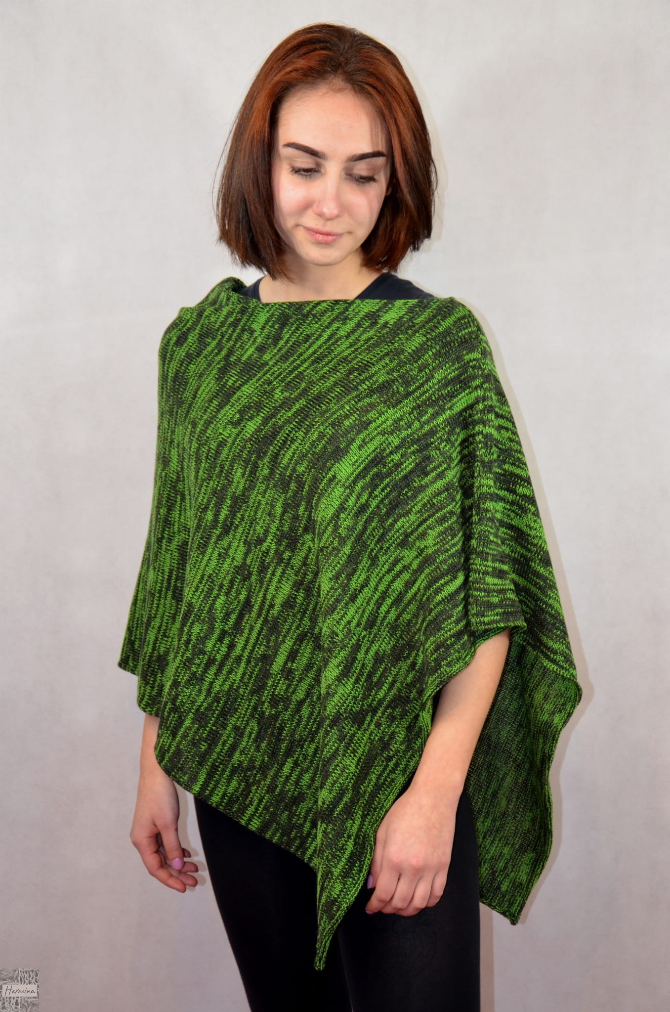 Ponczo wmelanżu zielonych odcieni. wykonane z włoskiej przędzy. Dostępne w dwóch wielkościach, mniejsze odpowiada rozmiarom S/M, większe rozmiarowi L/XL. Prosta forma doskonale pasuje do codziennych stylizacji. Idealne na chłodniejsze dni, zarówno wiosną, latem i jesienią. Kolor na zdjęciu może się różnić ze względu na parametry monitora.