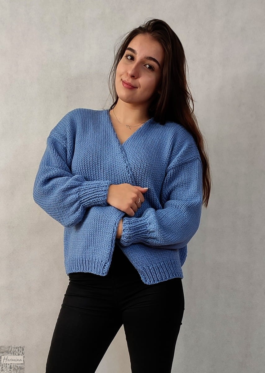 Ciepły, ręcznie robiony sweter wykonany z wełny i alpaki.