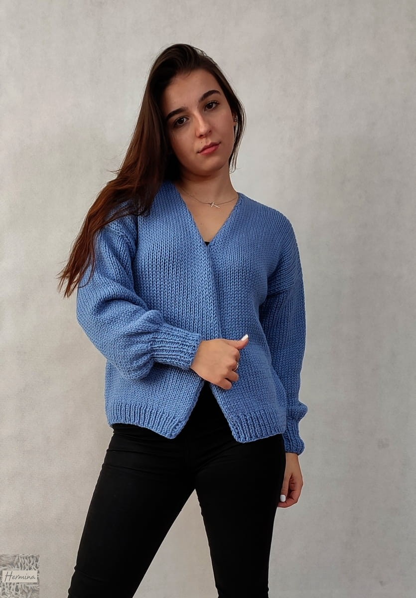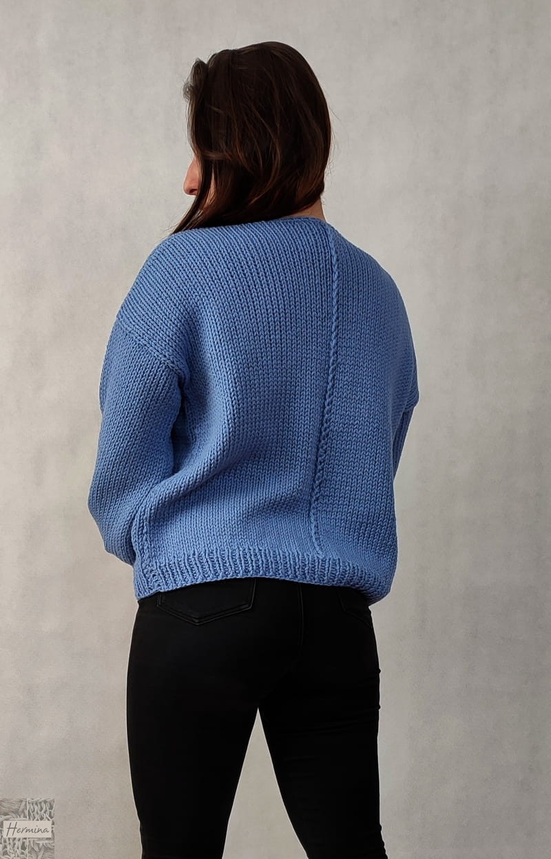 Wymiary swetra mierzone na płasko; szerokość 54 cm, długość 55 cm, długość rękawa mierzona od pachy 45 cm. ( tolerancja 2 cm)