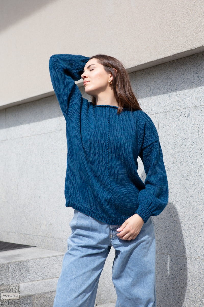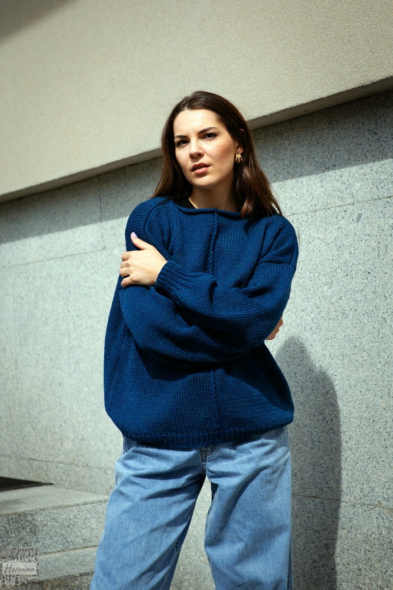 Sweter jest wykonany ręcznie na drutach z wysokiej jakości włóczki wełnianej.