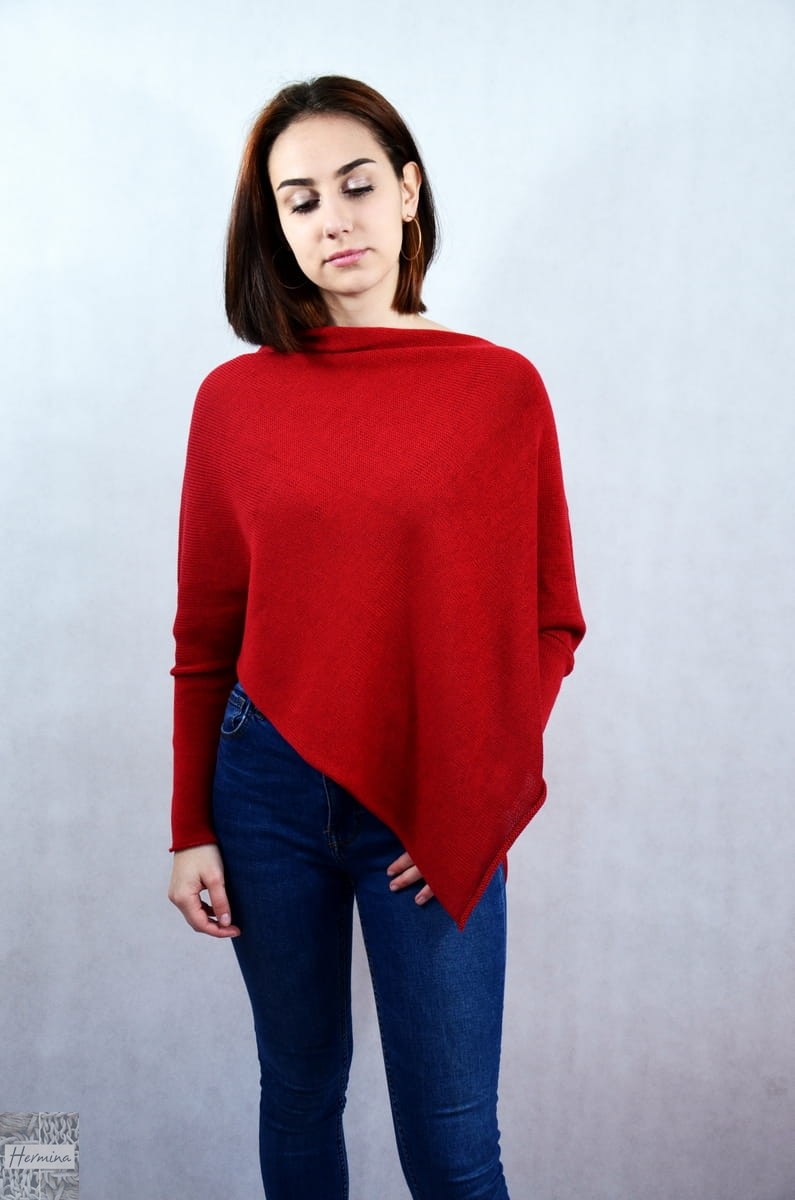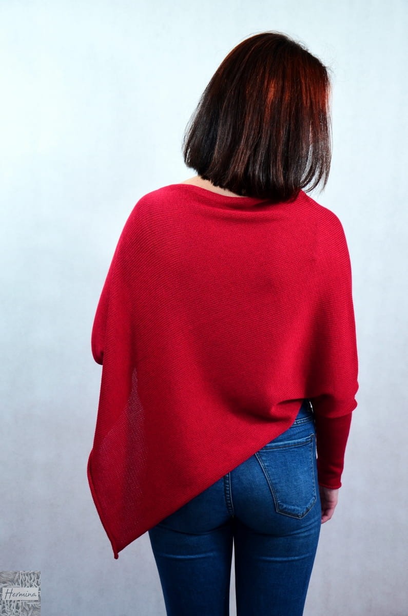 SWETER-PONCZO CIEMNOCZERWONE