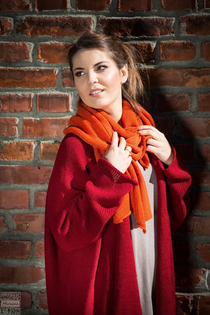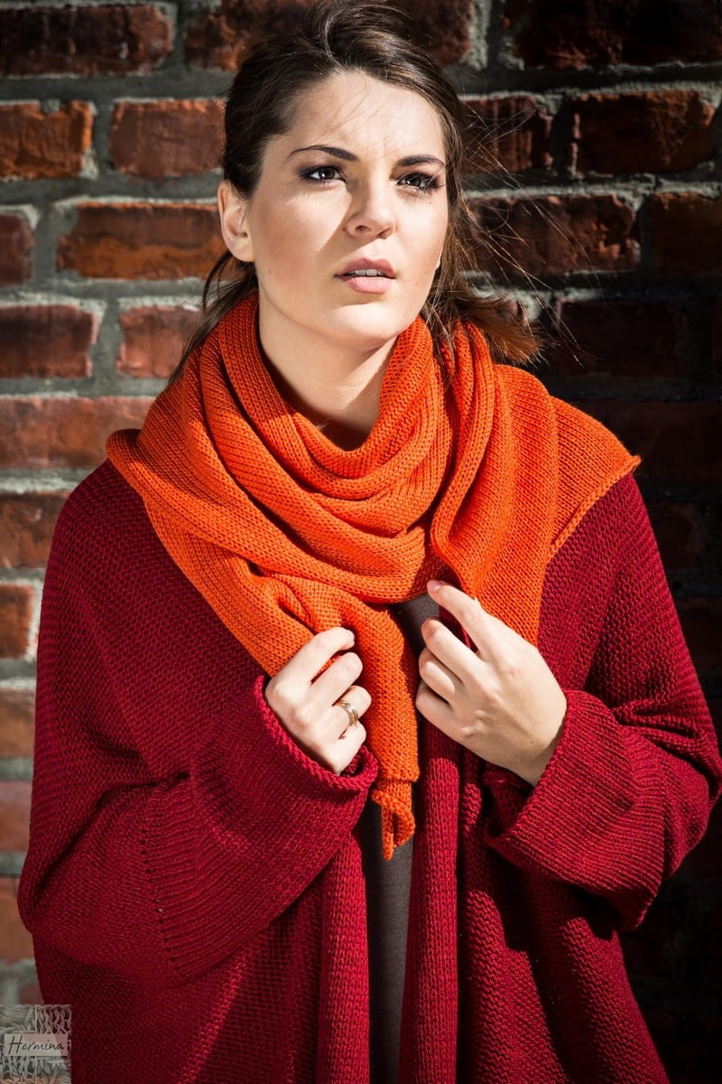 Ciepły, obszerny, miękki szal w kolorze pomarańczowym. Można go nosić na wiele sposobów. Niezbędny w każdej szafie. Niezwykle praktyczny i wygodny. Doskonale otula w chłodniejsze dni.