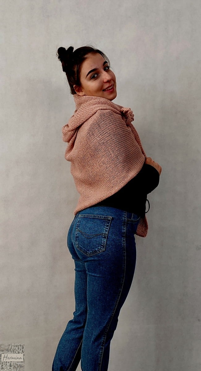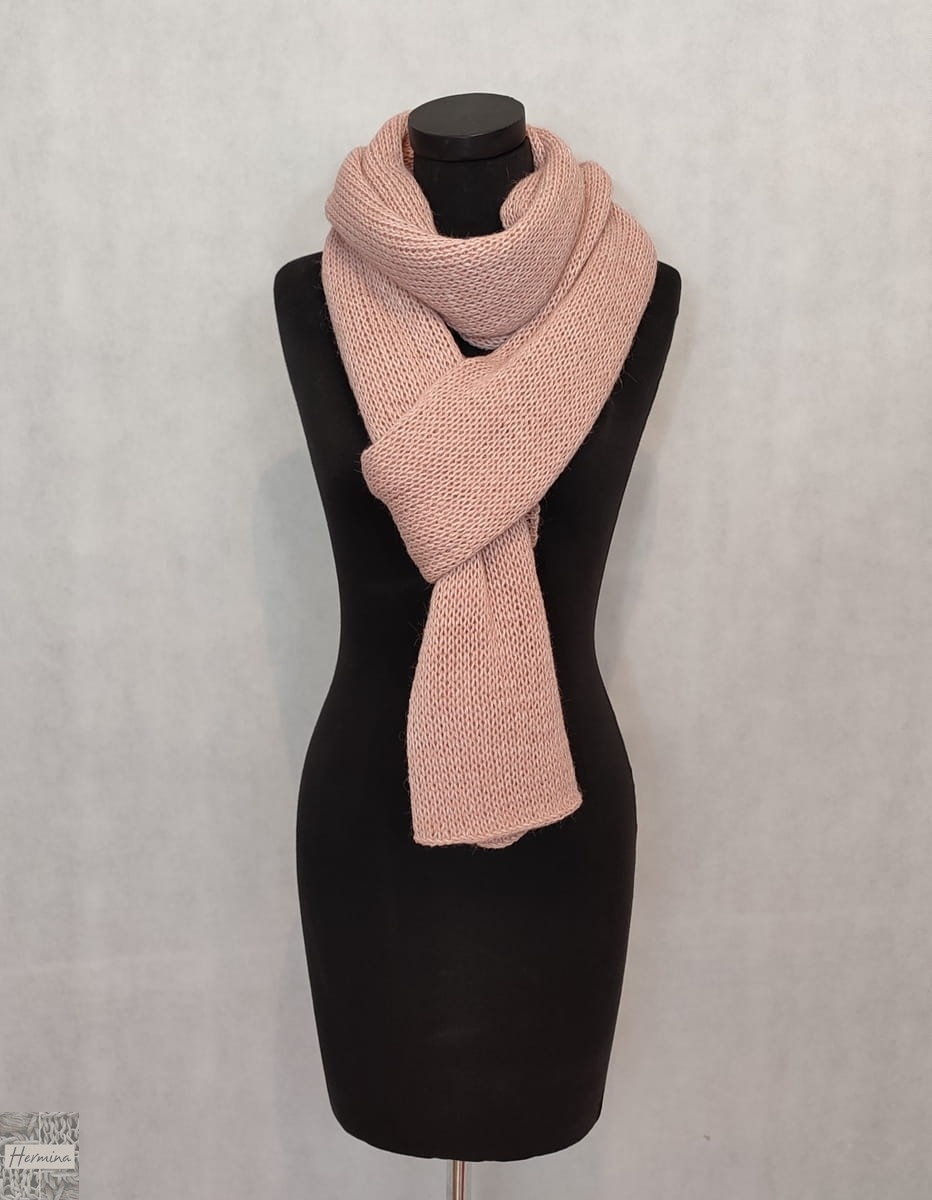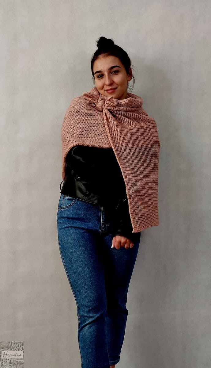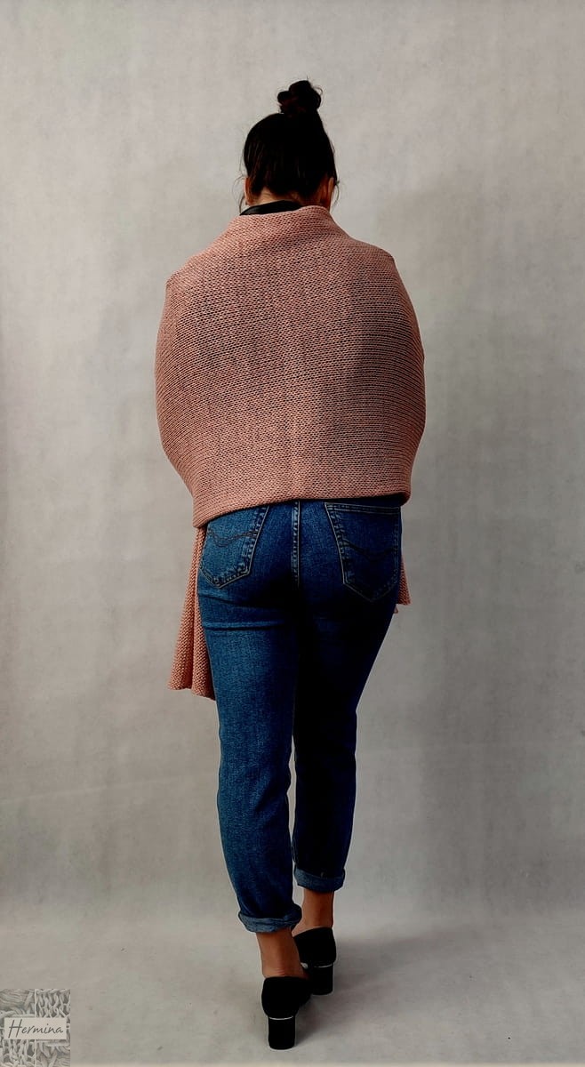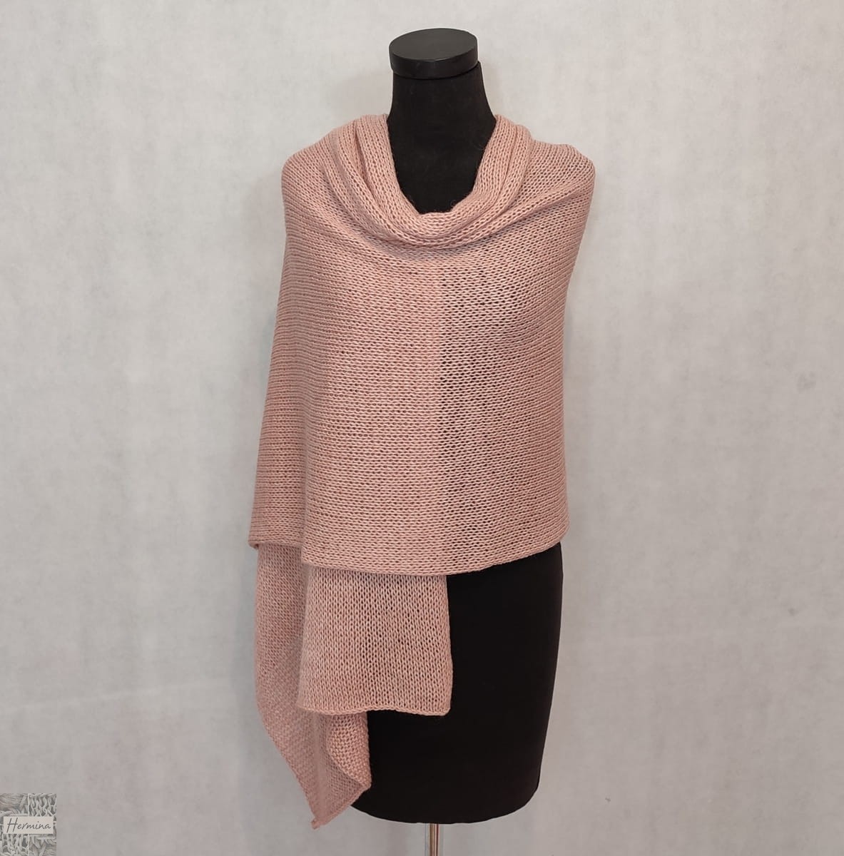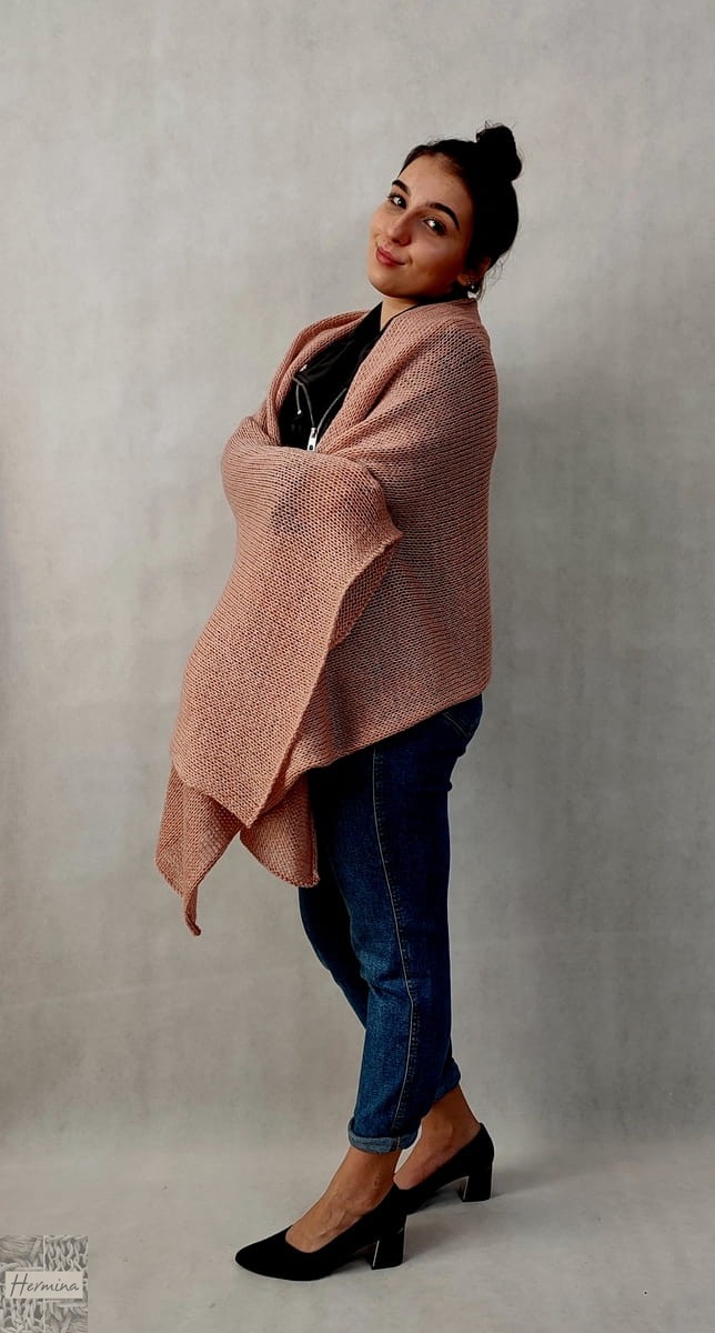 Ciepły, obszerny, miękki szal w kolorze brudnego różu. Można go nosić na wiele sposobów.
